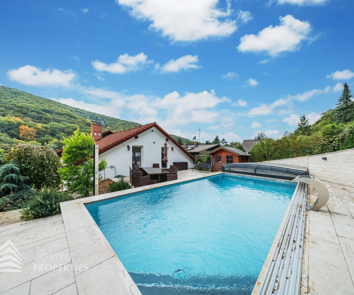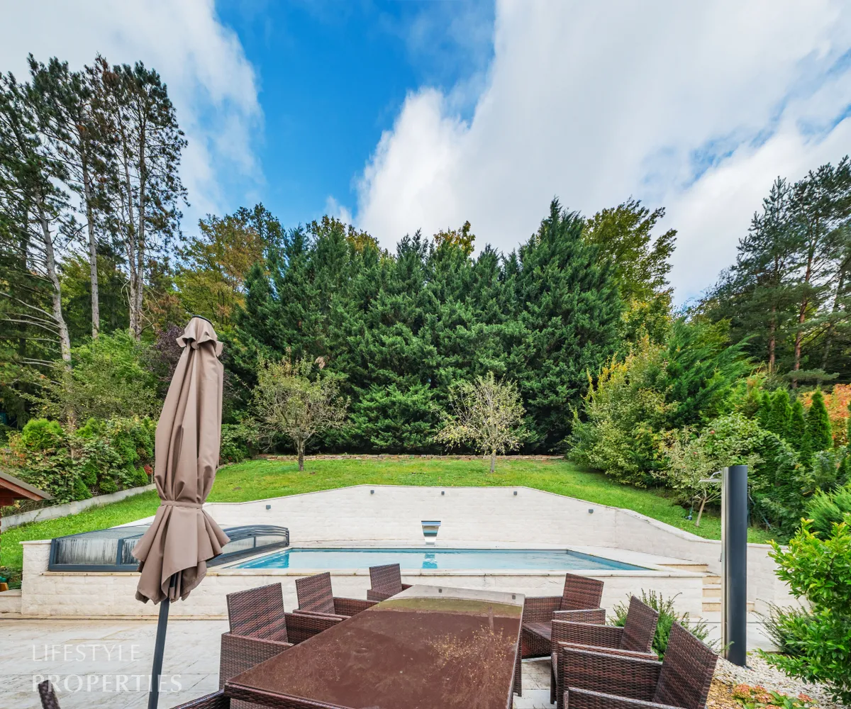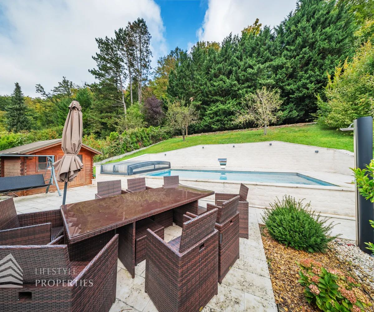 Diese Villa ist ein einmaliges Refugium für Menschen, die das Besondere suchen – luxuriös, flexibel und eingebettet in eine traumhafte Naturkulisse mit Waldblick, beheiztem Salzwasserpool, Pool-Dom, mehreren Terrassen und exklusiver Ausstattung.