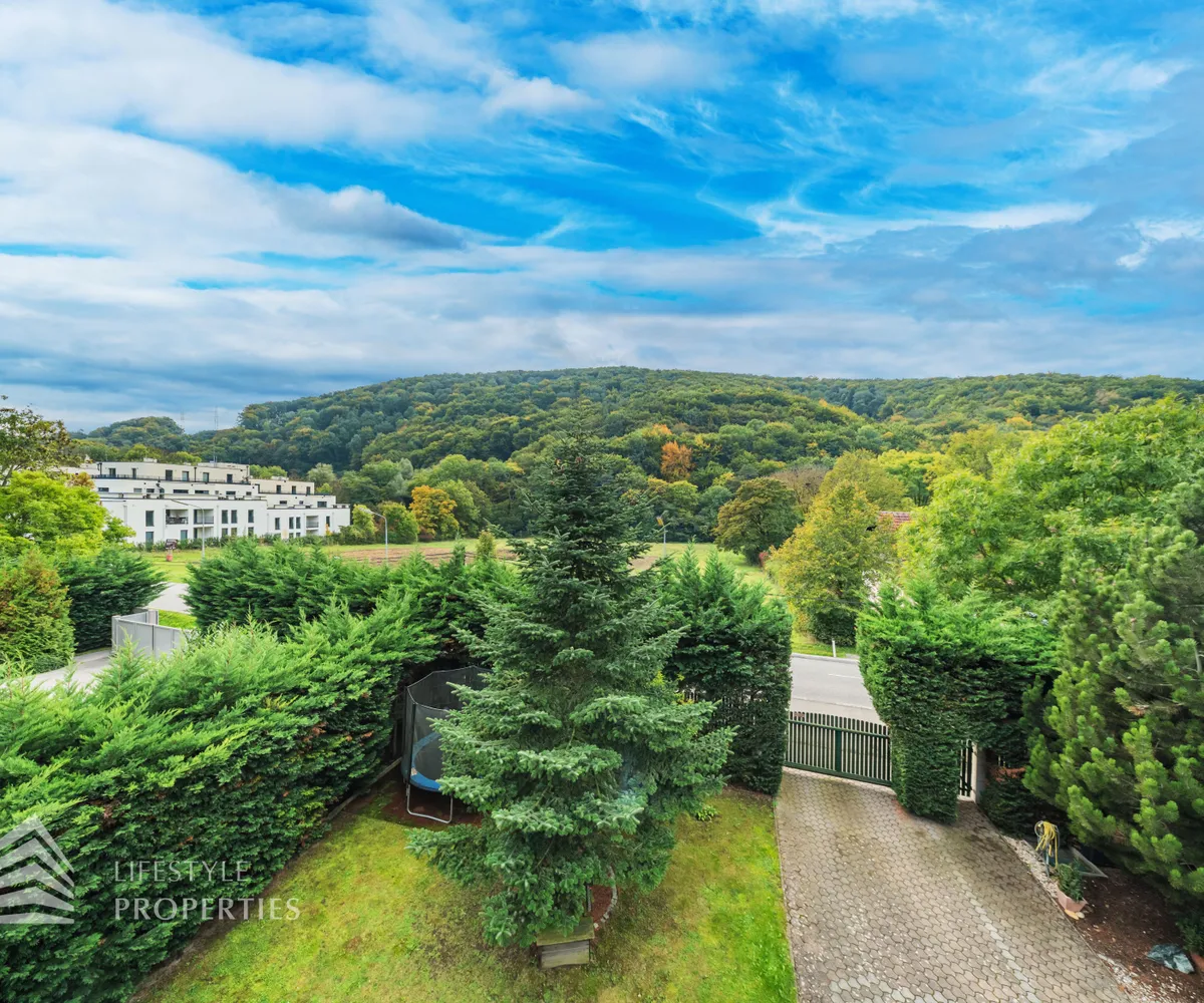 Das Anwesen bietet mehrere Terrassen und einen Balkon, verteilt auf Erd- und Obergeschoss, sowie insgesamt ca. 4 Stellplätze. Die ruhige Lage am Waldrand des 14. Bezirks von Penzing garantiert absolute Privatsphäre und gleichzeitig kurze Wege in die Stadt. Einkaufsmöglichkeiten, Schulen, Kindergärten und Restaurants sind in wenigen Minuten erreichbar, während die Nähe zum Wienerwald vielfältige Freizeitmöglichkeiten eröffnet.