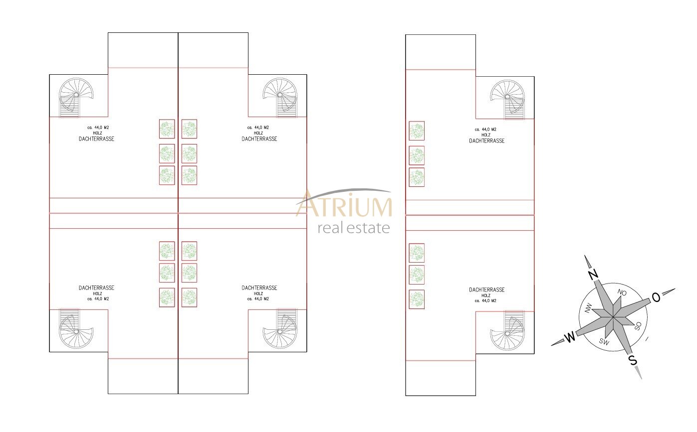 Aufpreis zusätzliche Etage mit ca. 44m² Dachterrasse: € 20.000, -