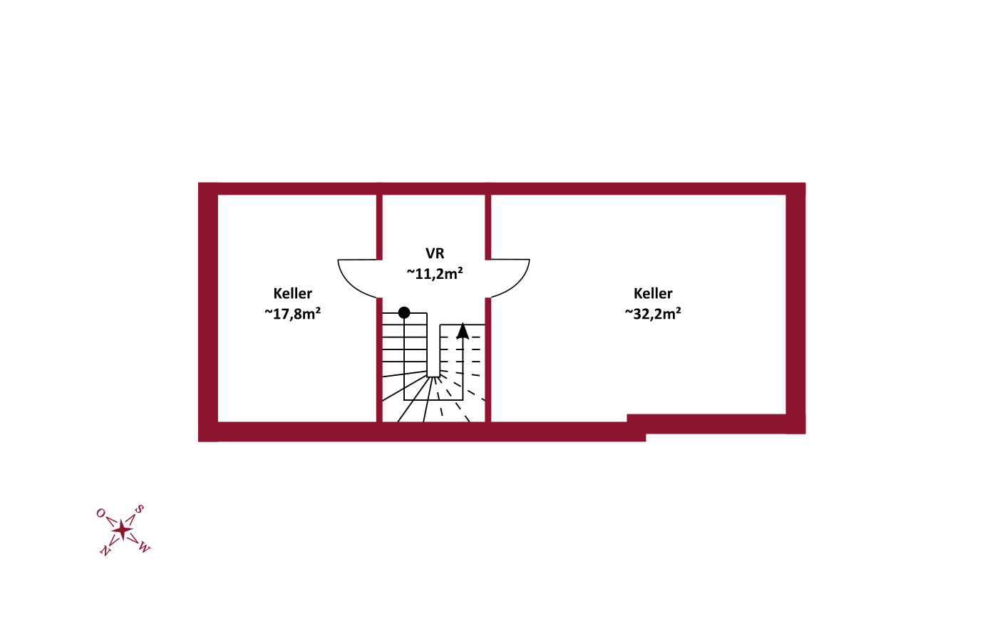 Das Haus ist vollunterkellert und bietet einen großzügigen Kellerbereich von ca. 61 m² – ideal für Vorräte, einen Weinkeller oder sogar einen Saunabereich .