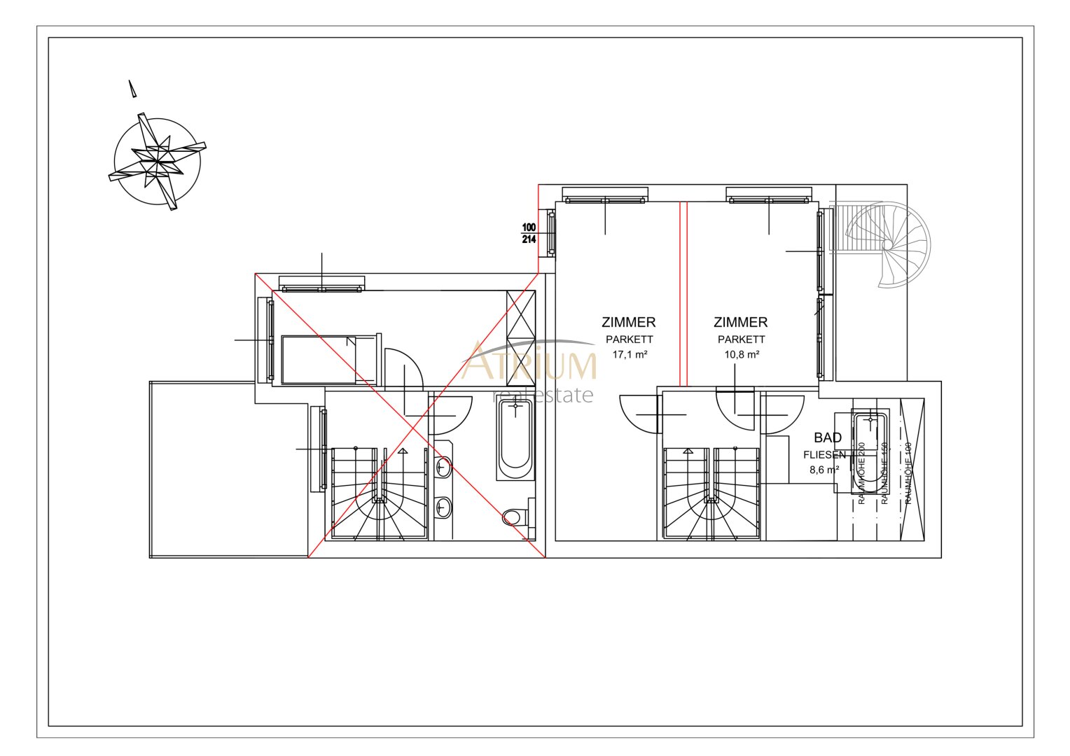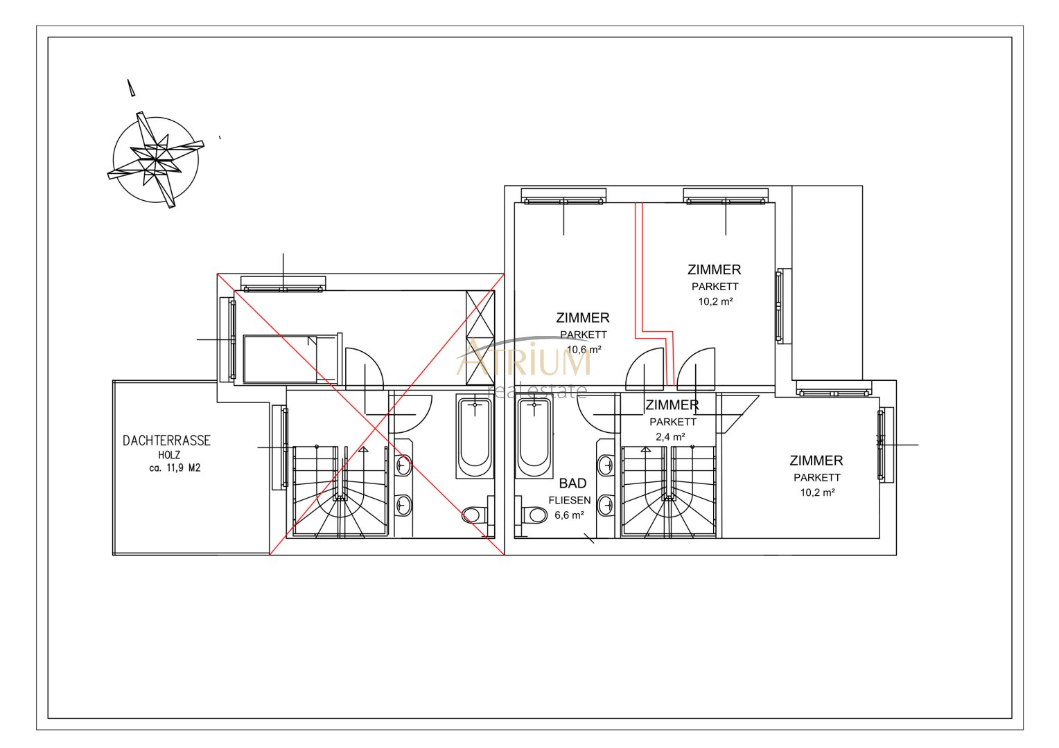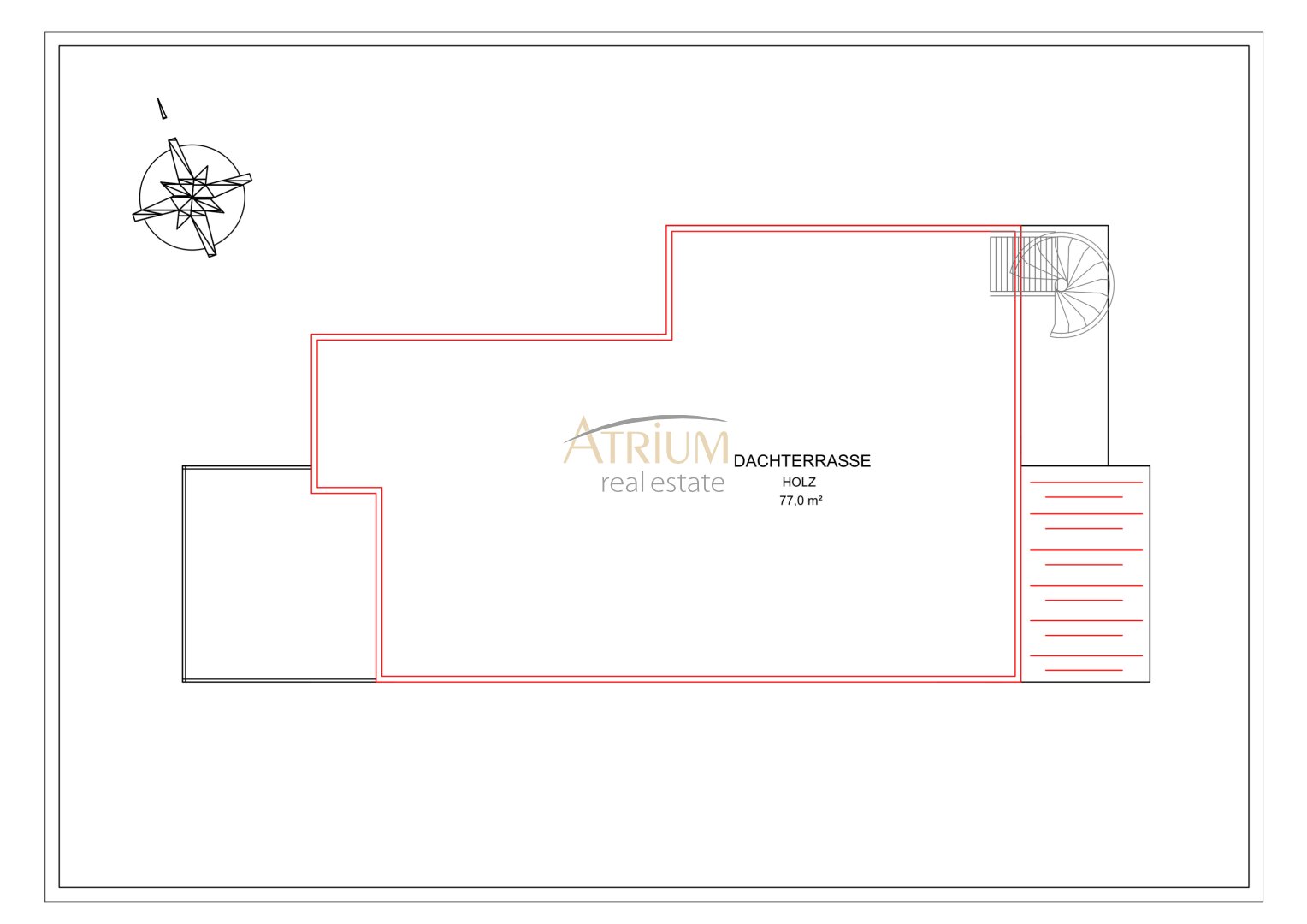 Aufpreis zusätzliche Etage mit ca. 77m² Dachterrasse: € 10.000, -