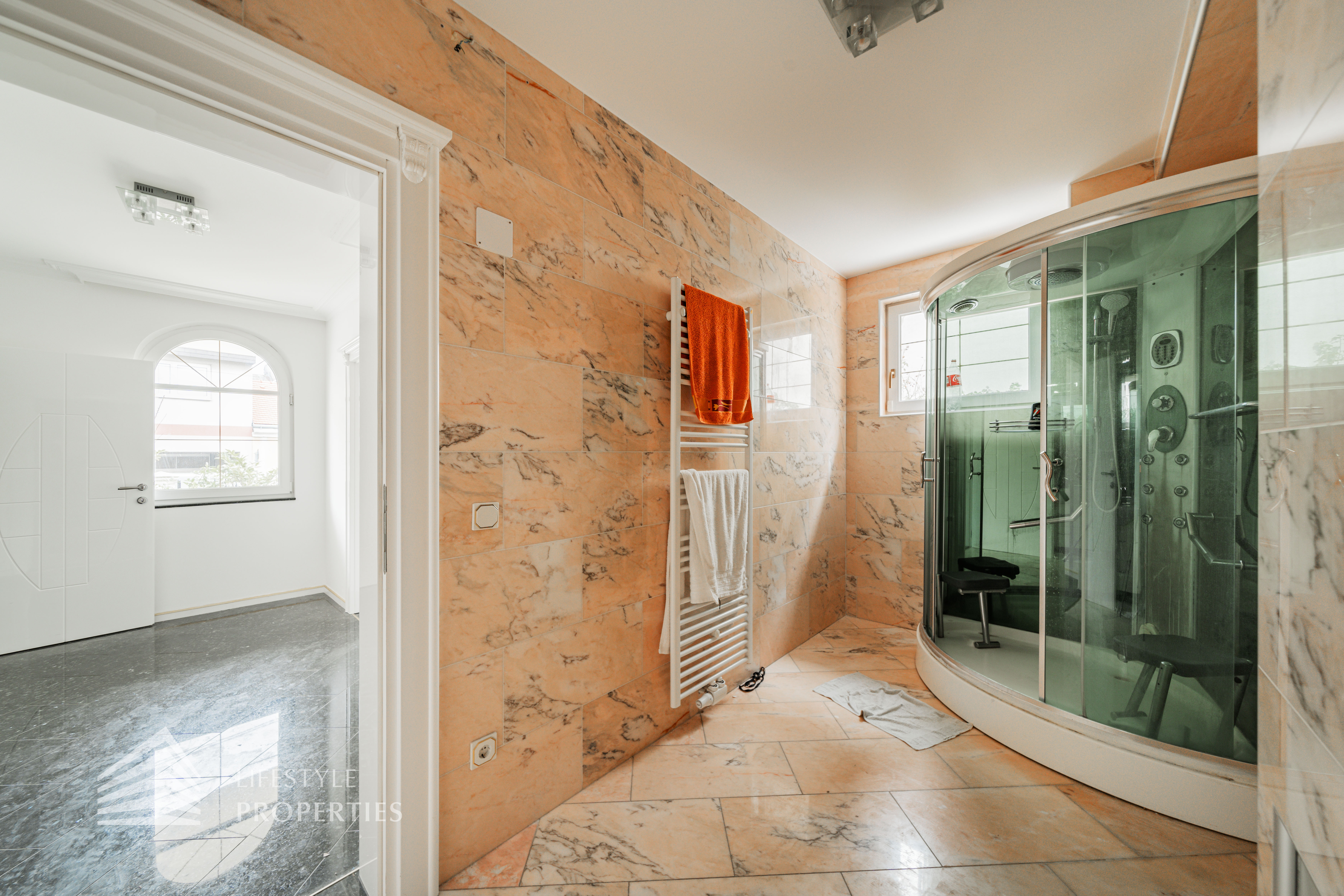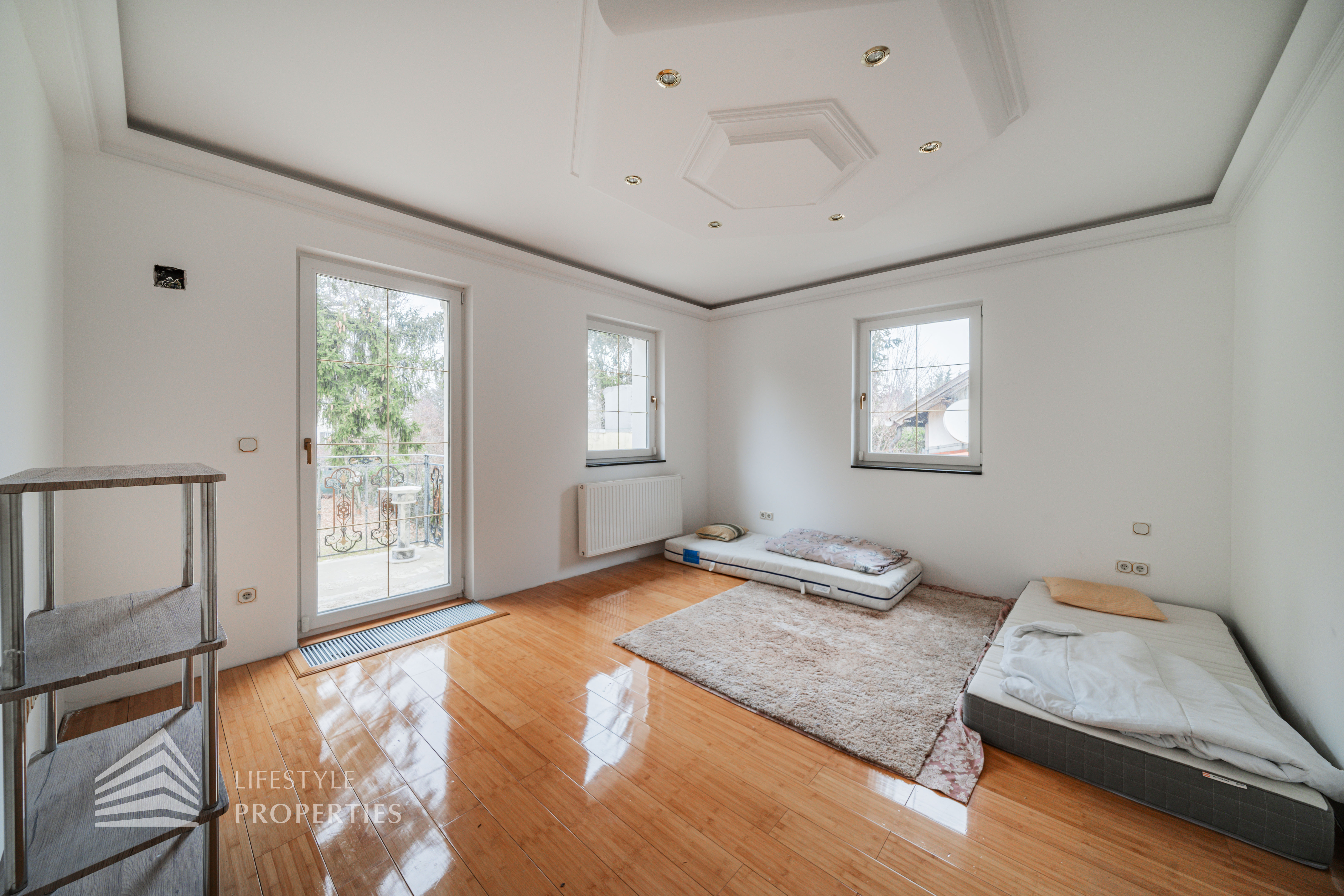 Die einzigartige Villa mit einer Wohnfläche von ca. 262 m 2 befindet sich auf einem Grundstück von knapp 995 m 2 . Diese stilvolle Villa wurde 2011 erbaut. Aufgrund der Größe und der Vielzahl an Zimmer bietet dieses Objekt die Möglichkeit alle Wohnträume zu verwirklichen. Ebenso gibt es mehrere Balkone und Terrassen, sowie einen großen Garten. Die Räumlichkeiten teilen sich auf in zwei Regelgeschoße. Beim Bau der Villa wurde auf sehr auf Qualität geachtet. Beheizt wird das Haus mittels einer Gasetagenheizung und Fußbodenheizung. Zusätzlich bietet Ihnen diese Immobilie eine praktische Garage.