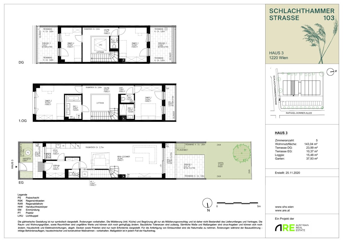 Das Projekt in der Schlachthammerstraße liegt in Essling östlich des Wiener Stadtzentrums, zwischen Aspern und der Seestadt, Hirschstetten und dem Marchfeld. Die Buslinie 98A fährt direkt zur U2, und auch die Buslinien 26A, 88A, 88B und N26 sind in wenigen Minuten zu Fuß erreichbar. Darüber hinaus führt ein durchgehender Radweg mit einer Fahrzeit von etwa 30 Minuten ins Stadtzentrum: durch die Lobau und über die Donauinsel, durch den Prater und die Donaulände entlang. Zu Fuß ist der Nationalpark Donau-Auen rund 15 Minuten entfernt.