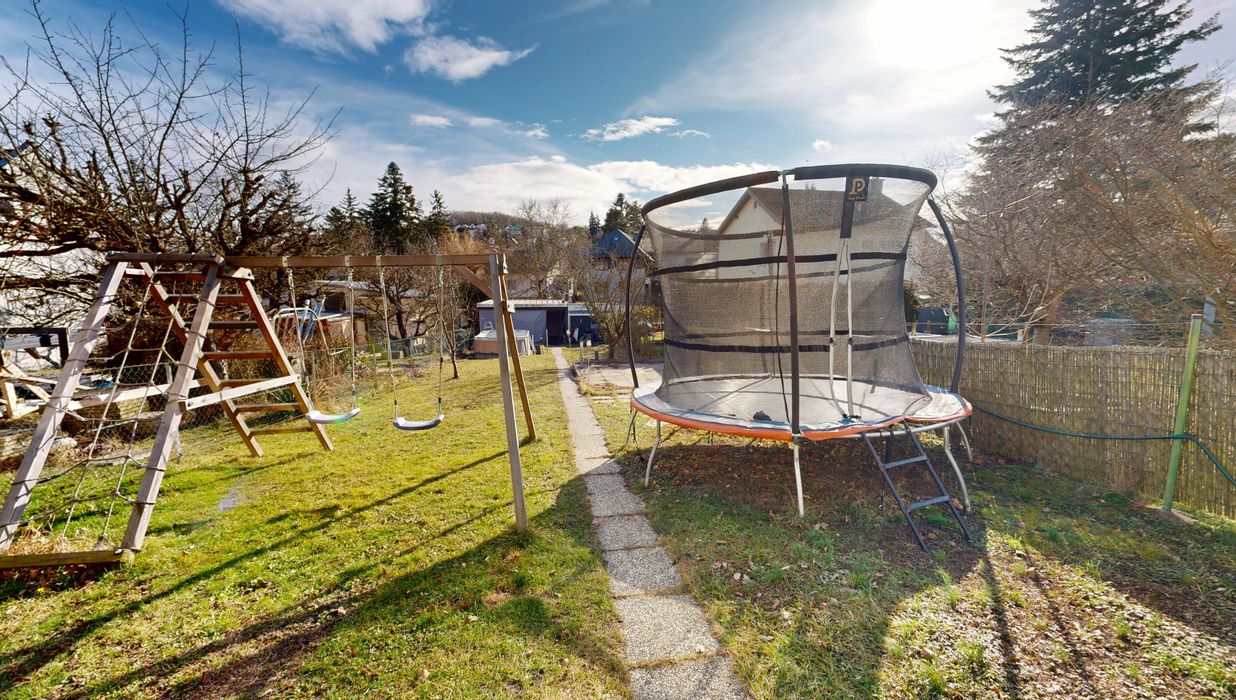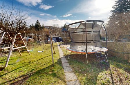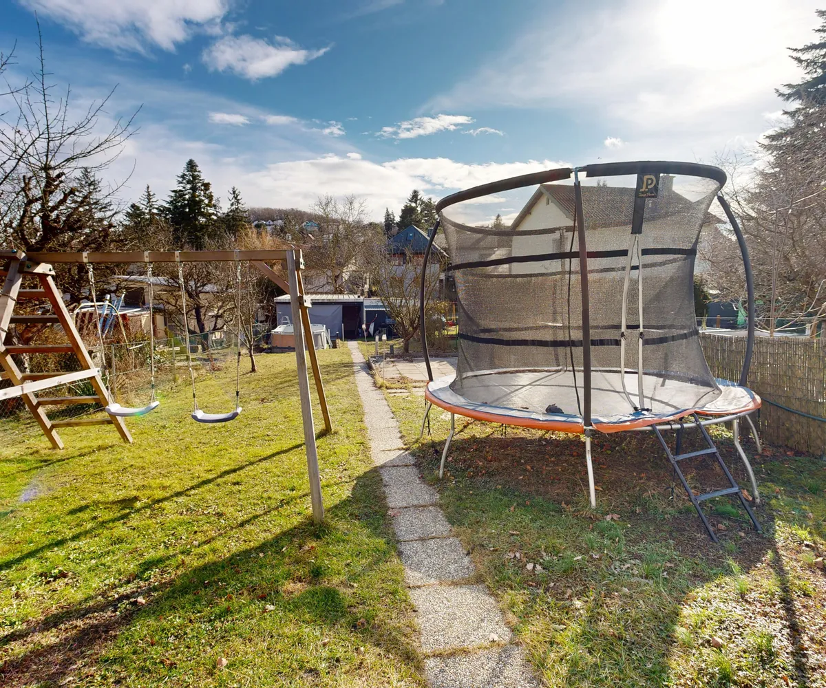 Der weitläufige Garten bietet Raum für Erholung und gemeinsame Zeit. Ob entspannte Stunden am Pool, ausgelassenes Spielen am Trampolin oder fröhliche Sommerfeste mit Familie und Freunden – hier ist Platz für all das, was Wohnen lebenswert macht. Zwei Stellplätze im eigenen Carport sorgen zusätzlich für Komfort im Alltag.