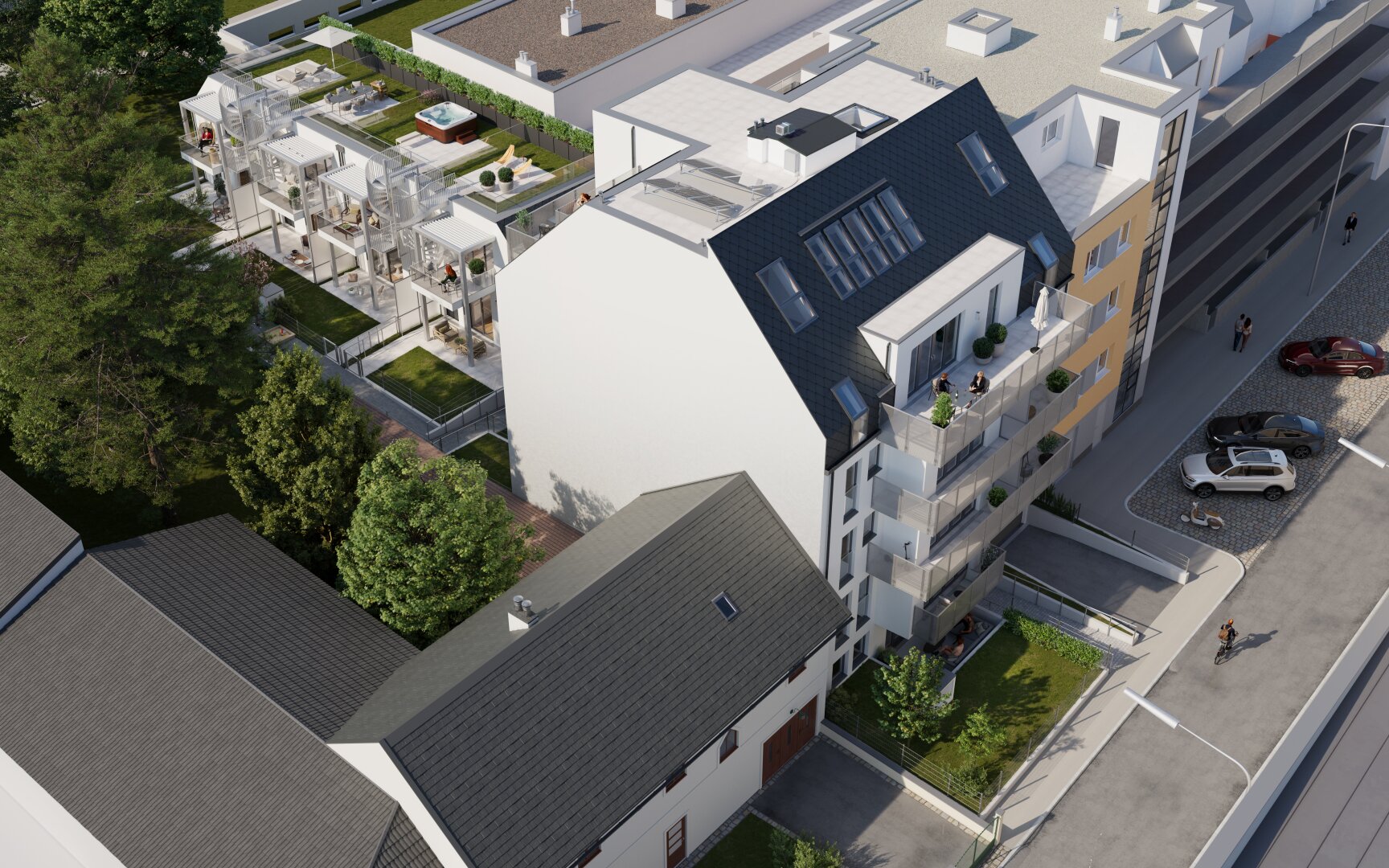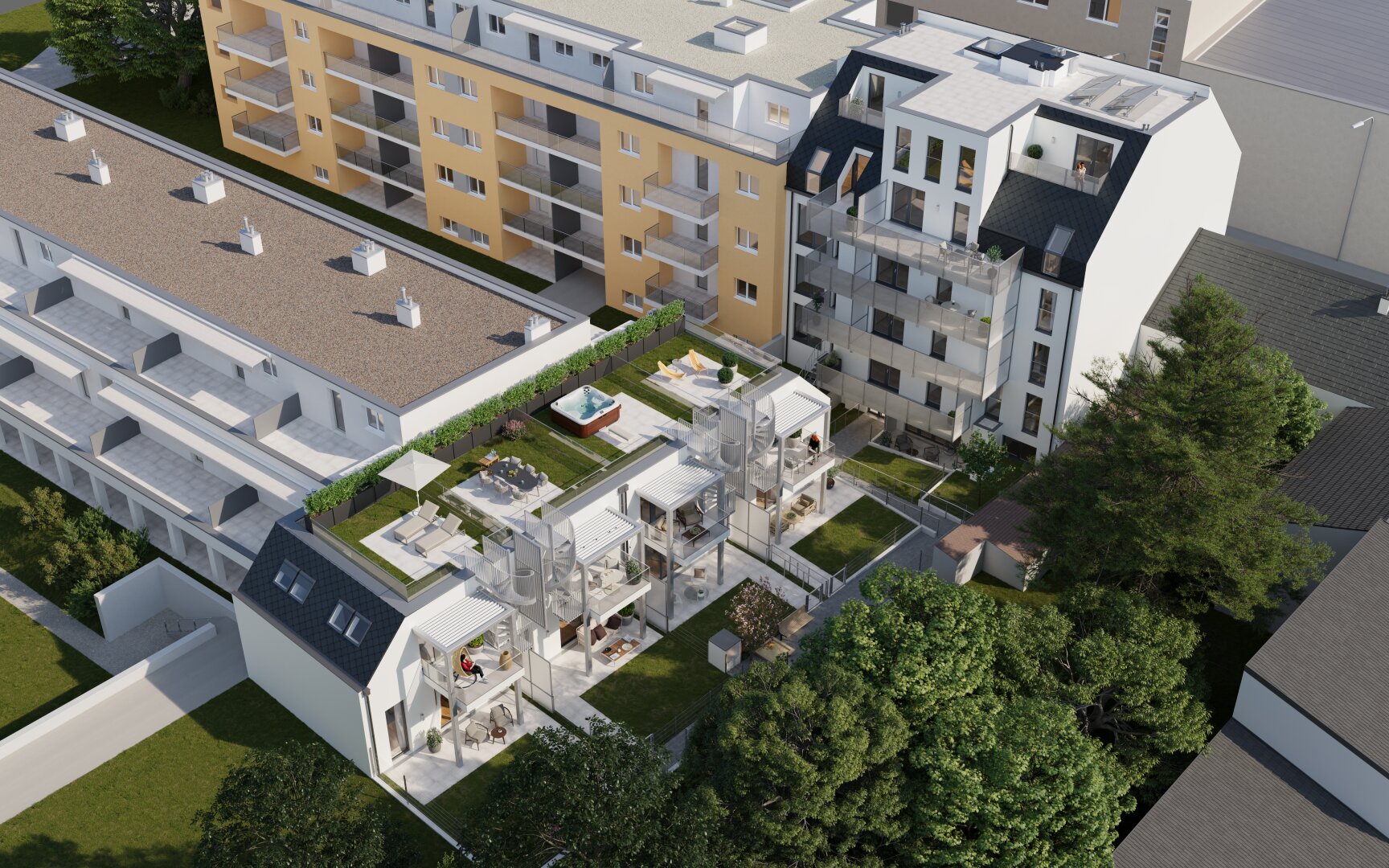 Die Mietzinsvorauszahlung beträgt 800 Euro pro m², die Bruttomiete beginnt bei 836 Euro für eine 2-Zimmerwohnung und 1.320 für eine 2-Zimmerwohnung. In einem der attraktiven Stadthäuser wohnt man ab rund 1.950 Euro brutto monatlich. Eine Kaufoption besteht nach fünf, zehn oder 15 Jahren – zum bereits bei Vertragsabschluss fix vereinbarten Preis.
