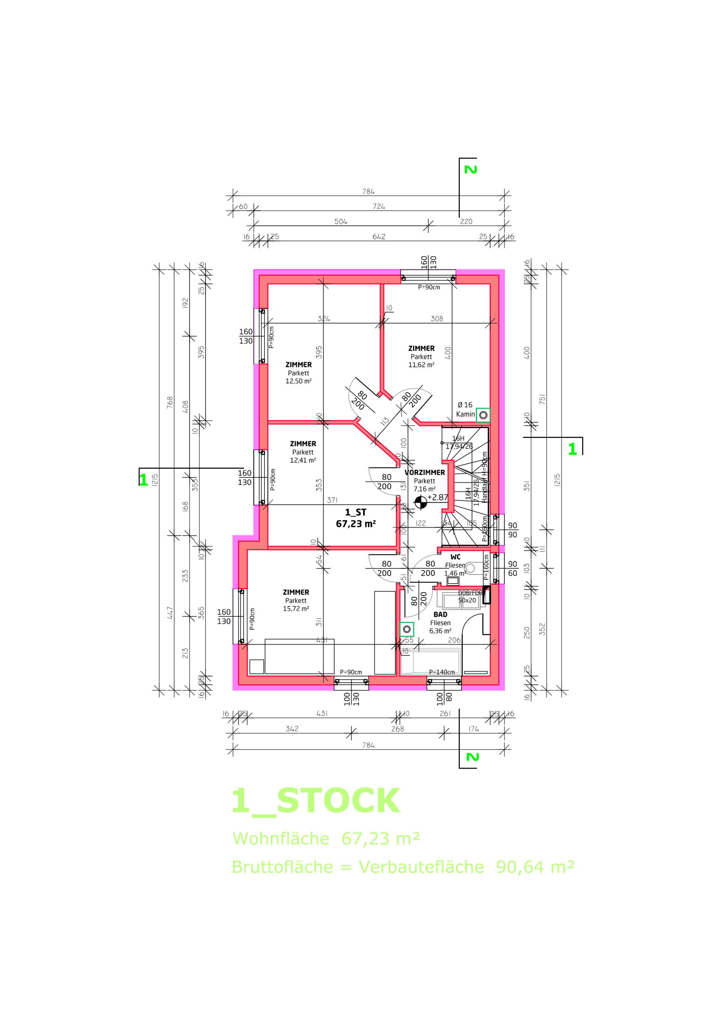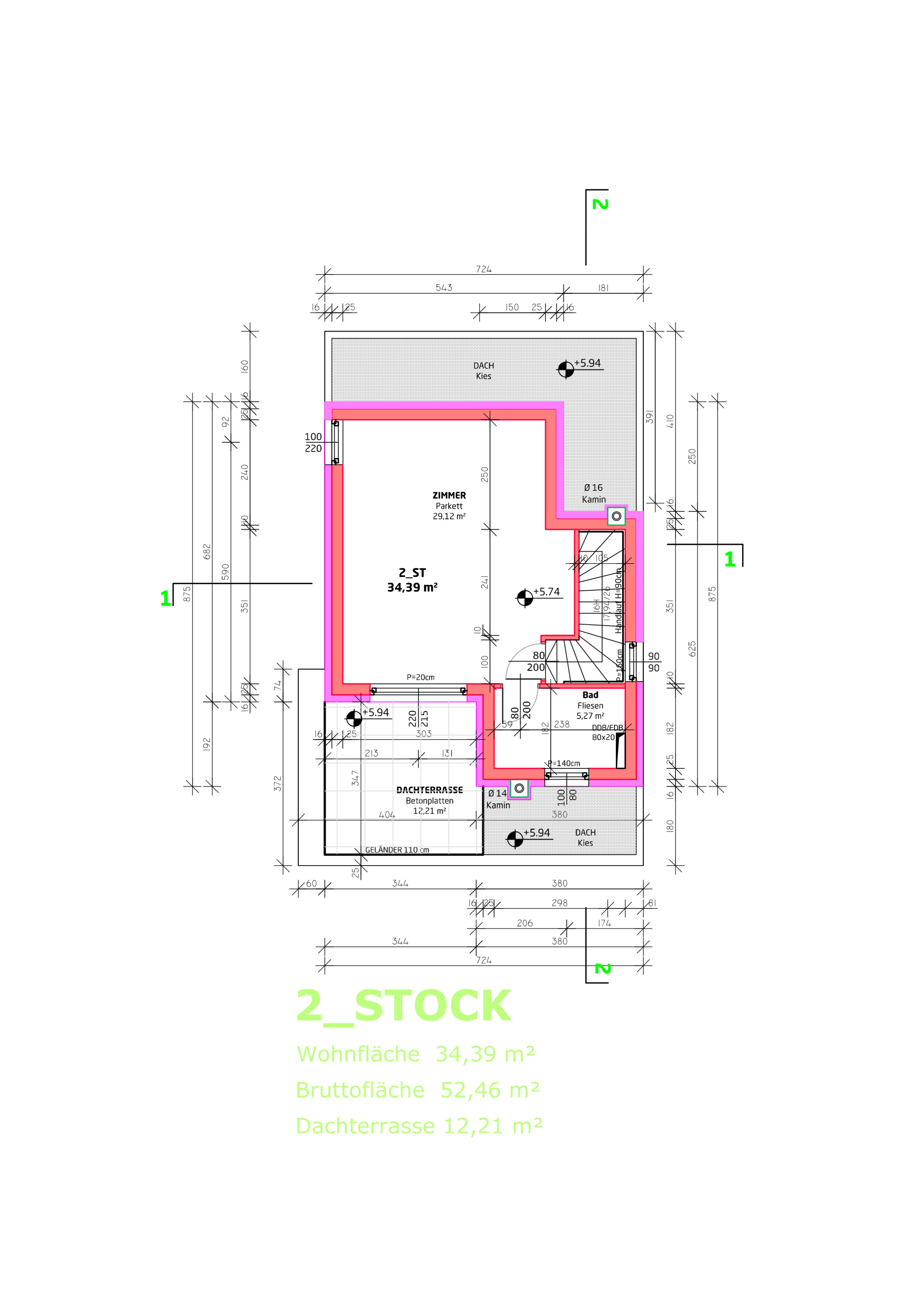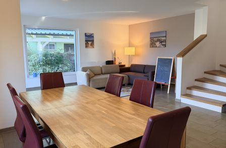 Das Haus besteht aus drei Ebenen mit 67 m² (EG), 61 m² (OG) und 34 m² (Studio) mit vorgelagerter Terrasse nach Südwesten.