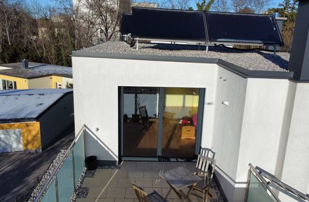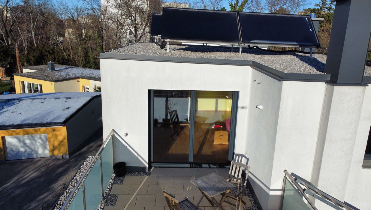 Das voll unterkellerte Haus bietet Ihnen und Ihrer Familie nicht nur eine große Wohnfläche von 163 m² plus 63 m² Keller, sondern auch einen gepflegten Garten mit Terrasse und eine Dachterrasse mit Anningerblick nach Südwesten.
