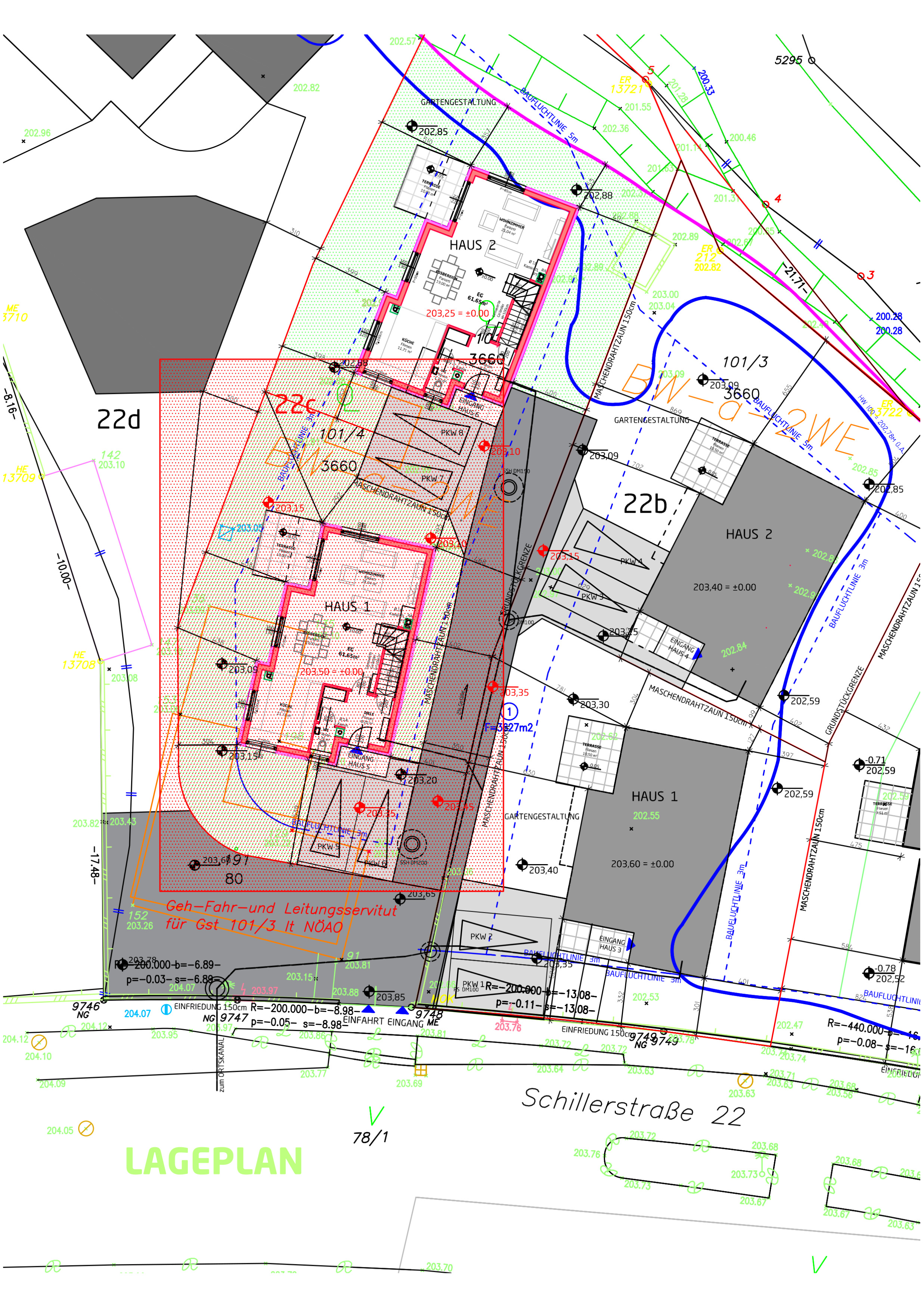 Das Grundstück ist mit dem benachbarten Haus als Wohnungseigentum verbunden. Gemeinsam sind es 700 m² , von denen Sie ca. 50% der Anteile erwerben (Wohnungseigentum).
