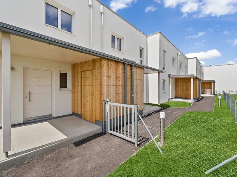 ERSTBEZUG! Neu fertiggestellte Reihenhäuser in moderner Holzbauweise, die nicht nur nachhaltig, sondern auch unglaublich wohnlich sind. Perfekt für alle, die von einem Zuhause mit klarem Konzept, viel Licht und einer grünen Umgebung träumen. Direkt beim Wiener Neustädter Kanal – liebevoll das „Canale Grande von Niederösterreich“ genannt – wohnen Sie dort, wo andere spazieren gehen. Viel Natur, viel Ruhe und trotzdem top angebunden: Der Bahnhof Civitas Nova liegt gleich ums Eck.