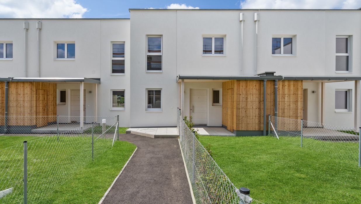 ERSTBEZUG! Neu fertiggestellte Reihenhäuser in moderner Holzbauweise, die nicht nur nachhaltig, sondern auch unglaublich wohnlich sind. Perfekt für alle, die von einem Zuhause mit klarem Konzept, viel Licht und einer grünen Umgebung träumen. Direkt beim Wiener Neustädter Kanal – liebevoll das „Canale Grande von Niederösterreich“ genannt – wohnen Sie dort, wo andere spazieren gehen. Viel Natur, viel Ruhe und trotzdem top angebunden: Der Bahnhof Civitas Nova liegt gleich ums Eck.