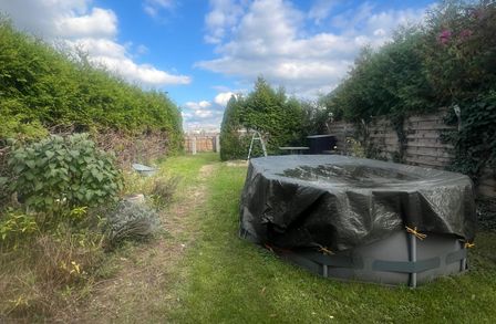 Der gepflegte Garten bietet reichlich Platz zum Entspannen und Gärtnern. Durch die Lage am Ortsrand ist man von viel Grün umgeben, während Einkaufsmöglichkeiten, Schulen und öffentliche Verkehrsmittel in kurzer Distanz erreichbar sind.