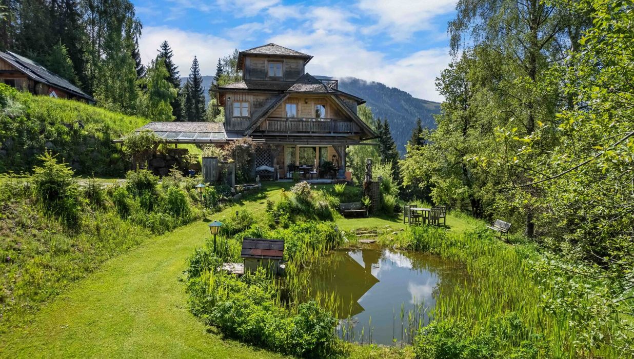 Diese besondere Immobilie, in ihren Grundzügen vor ein paar Jahrzehnten erbaut und mit viel Liebe immer wieder adaptiert und restauriert, ist bis heute gut erhalten und wurde zuletzt um die Jahrhundertwende adaptiert und teilweise erneuert. So bietet dieses besondere Haus den Eigentümern ein perfektes und angenehmes Heimkommen in eine wahrliche Ruhe- und Naturoase. Über 3 Geschosse erstrecken sich die rd. 300 m² Nutzfläche mit einem zusätzlichen Dachraum, dem ausgebauten Turmzimmer – ein Juwel für alle Liebhaber der Romantik und der Zweisamkeit. Diese Liegenschaft besteht aus dem Hauptgebäude - Haus, einem Nebengebäude, einem Fischteich, einem Biotop – verwendbar auch zum Baden, großzügige Grünbereiche, Wald – das eigene Brennholz, Spazierpfade und noch einige mehr. Rund um die Gebäude ist eine Hofstelle gewidmet, das lässt erahnen, dass früher mal eine kleine Hube hier gestanden sein muß. Von vielen Bereichen des Hauses erreicht man die großzügigen Terrassen oder auch die Loggia im Dachgeschoss. Die Wohnbereiche sind geschmackvoll und dem ländlichen Stil angepasst eingerichtet. Ein ausgewogenes Farbkonzept, kombiniert mit qualitativ gutem Interieur sorgen für ein sich Wohlfühlen der besonderen Art. Ein kleiner Kellerraum steht ebenfalls zur Verfügung wie eine Vielzahl an Fahrzeugabstellplätzen im Freien oder im Carport. Von den Terrassen gelangt man bequem in den umliegenden Teil der Liegenschaft, abgeschirmt von Lärmbeeinträchtigung und geprägt von Natur so, wie wir sie uns wünschen. Sie entspannen bei den Fischen am Teich, im gut angelegten Biotop oder Sie geniesen Ihre Freizeit mit dem Spazieren an einem Fleckchen Erde, dass ihresgleichen sucht und mit einer Vielfalt an Blumen, Sträuchern und Bäumen, die man in dieser Form nicht leicht findet, punktet. Als Heizung dienen Infrarotheizkörper sowie mehrere mit Holz zu heizenden Öfen oder Kamine. In den Nassräumen und Vorräumen sind Fußbodenheizungen installiert. Diese Liegenschaft und das darauf befindliche Gebäude bieten die Möglichkeit mit dem Vorhandenen das Auslangen zu finden und für Sie und Ihre Familie, vielleicht auch für Freunde ein Refugium der eigenen, aber ganzbesonderen Art zu schaffen. Als Trinkwasserversorgung dient eine eigene Quelle – Herz was willst du mehr. Kanal- und Stromanschluss sind öffentlich, Internet funktioniert gut und ausreichend. Eine Liegenschaft also, die in sehr guter Lage für die Zukunft bereit ist, in welcher Form, Art und auf welche Weise, entscheiden Sie. Ihr neuer Lebensmittelpunkt, Ihr Freizeitjuwel in den ruhigen Bergen der Koralpe. Entscheiden Sie selbst, Ihr Naturjuwel ist bereit mit Herzblut erobert zu werden!