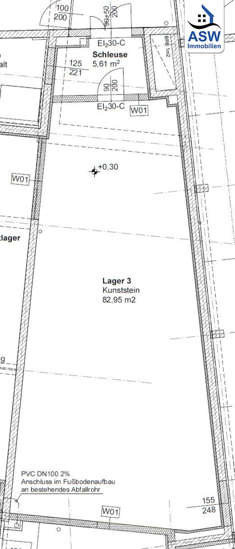 88,56 m² großes Lager inkl. Schleuse und Rampe für Anlieferung.