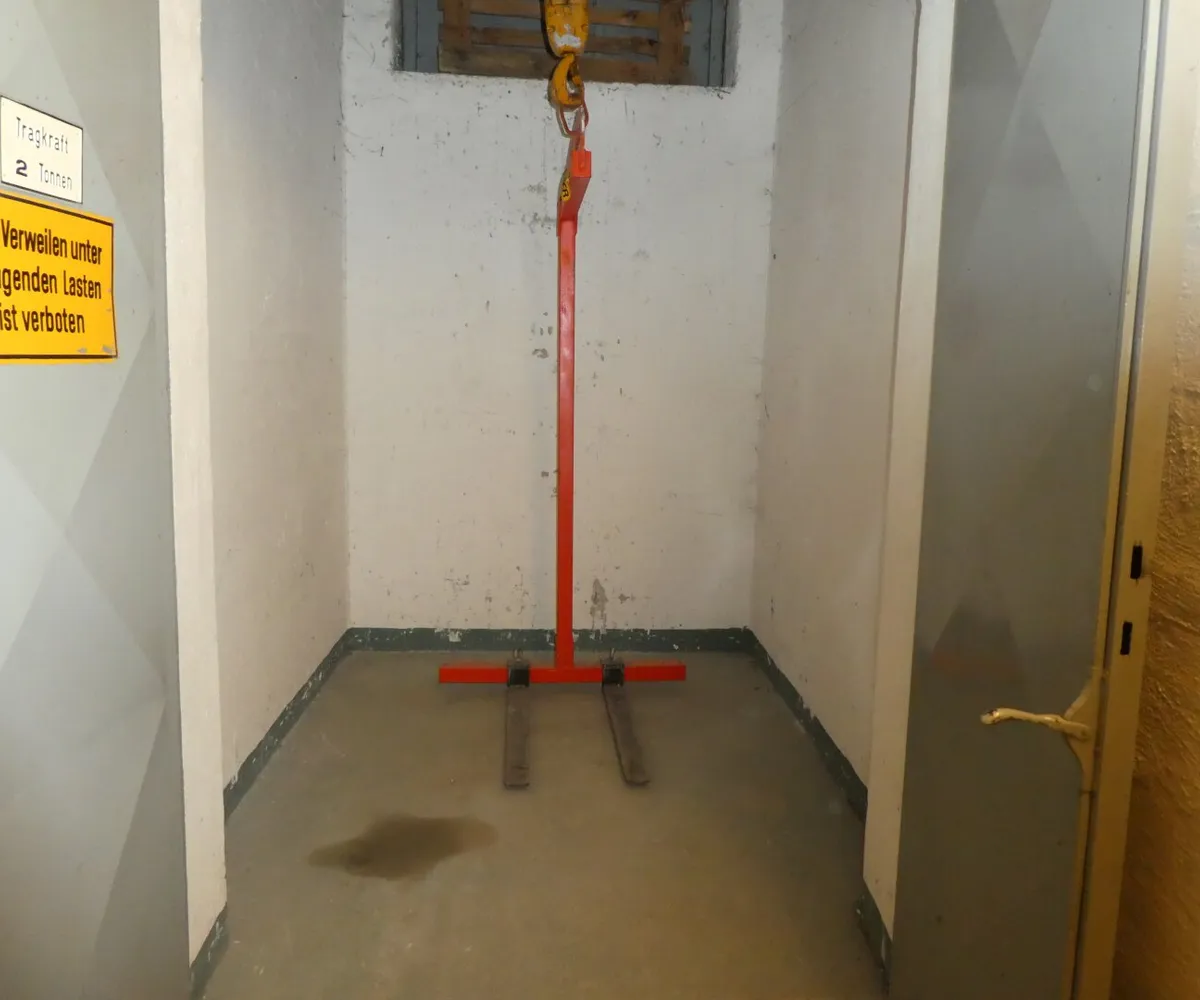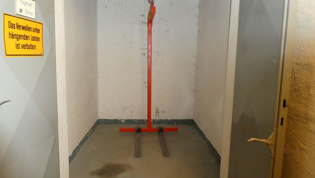 LAGERFLÄCHE IM KELLER MIT PALETTENLIFT, die Lagerfläche befindet sich im Innenhof einer Gewerbeliegenschaft in Korneuburg