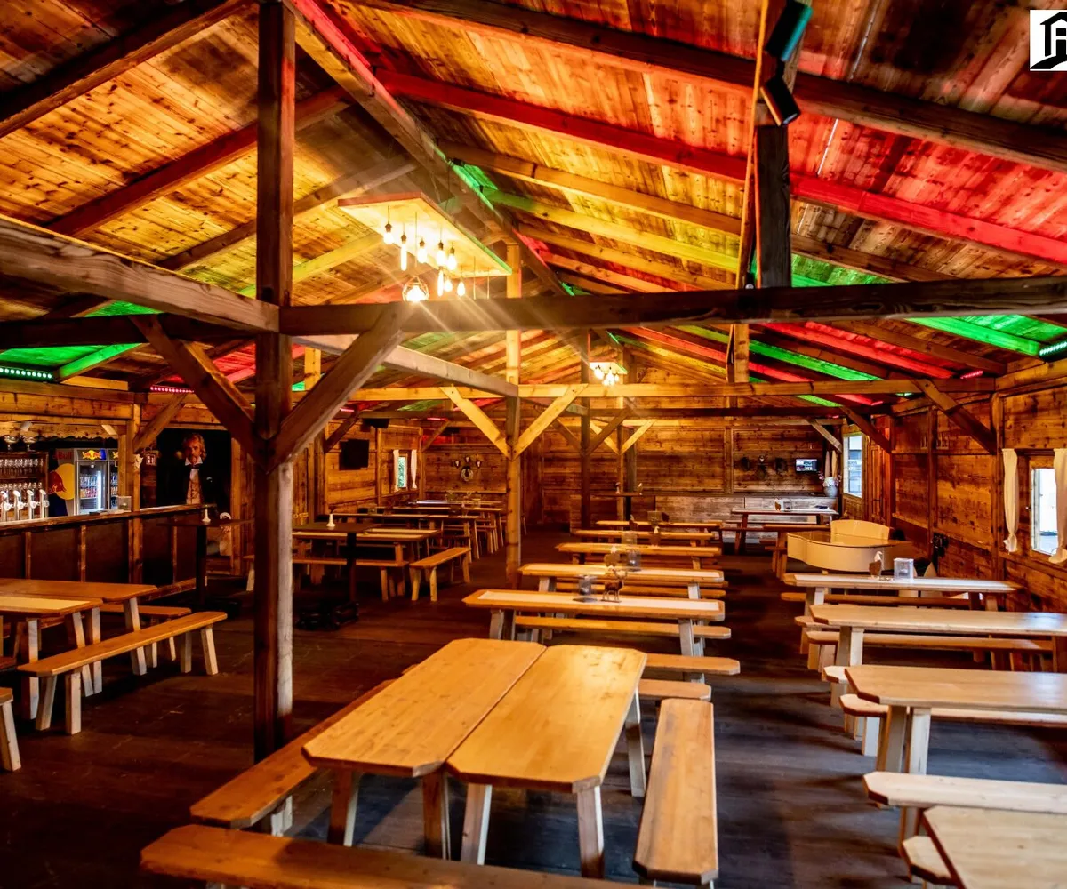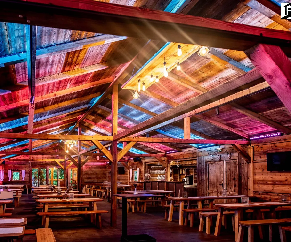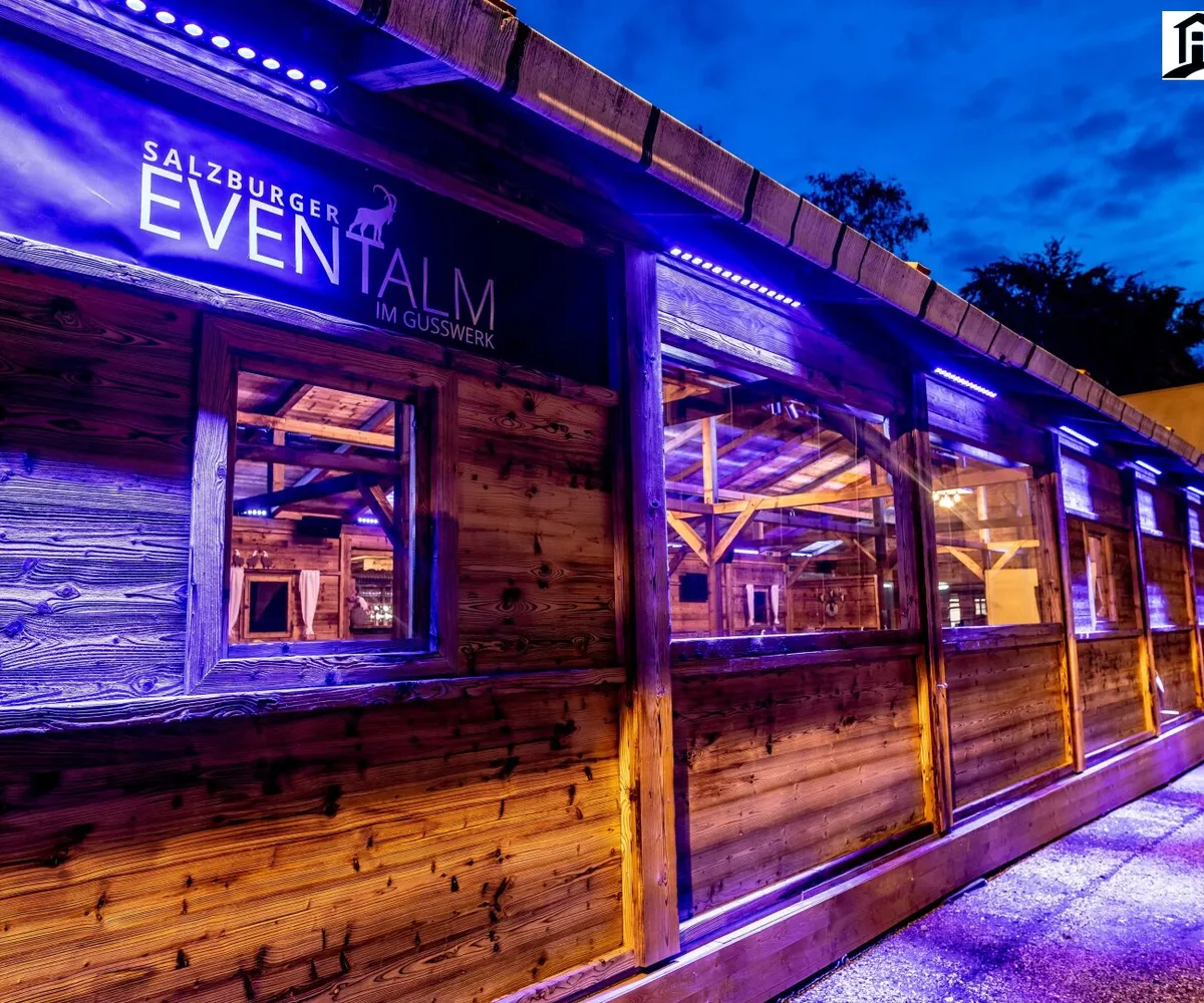 Mit ihrem rustikalen Design und ihrer charmanten Holzoptik schafft die Eventalm eine gemütliche und einladende Stimmung. Sie bietet ausreichend Platz für bis zu 300 Gästen und kann individuell dekoriert und gestaltet werden, um jedem Event eine persönliche Note zu verleihen.
