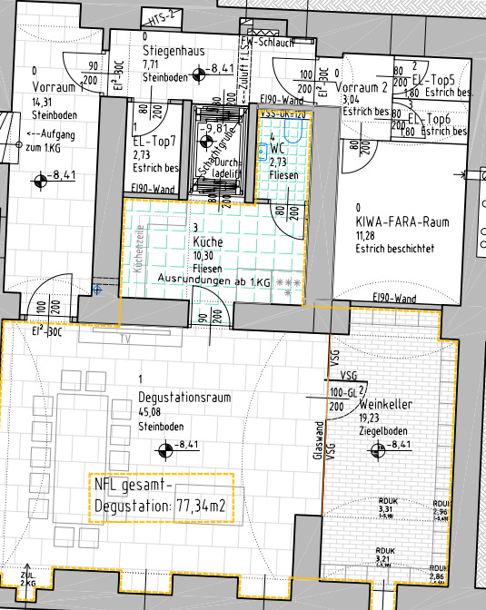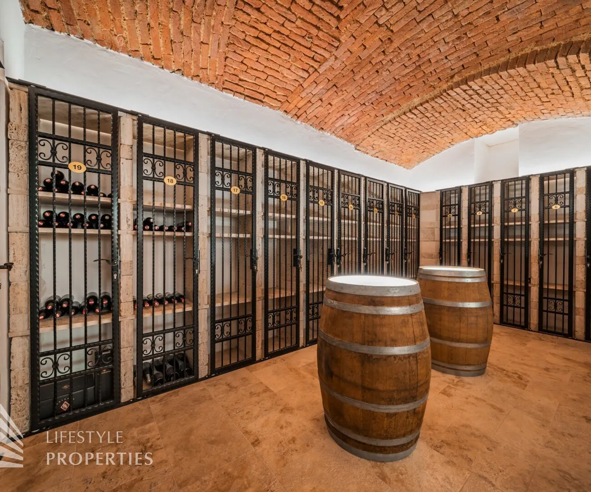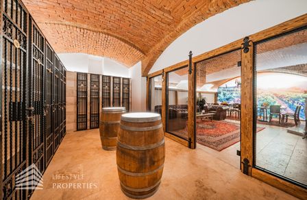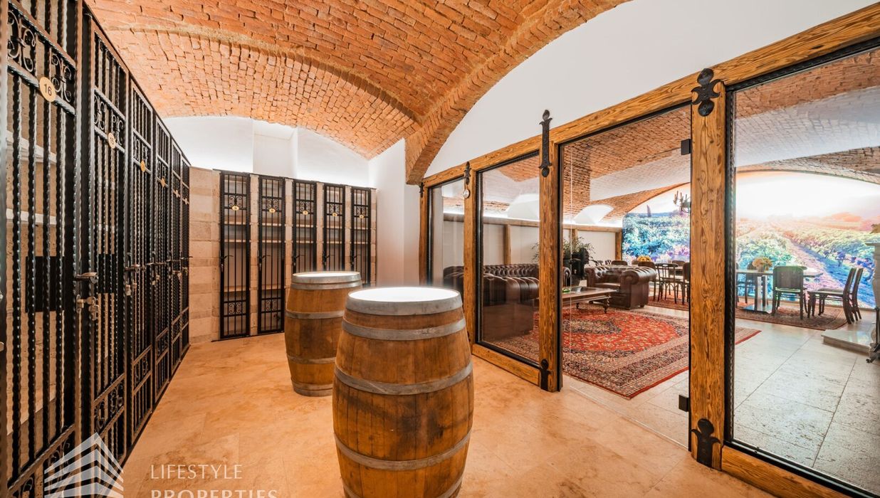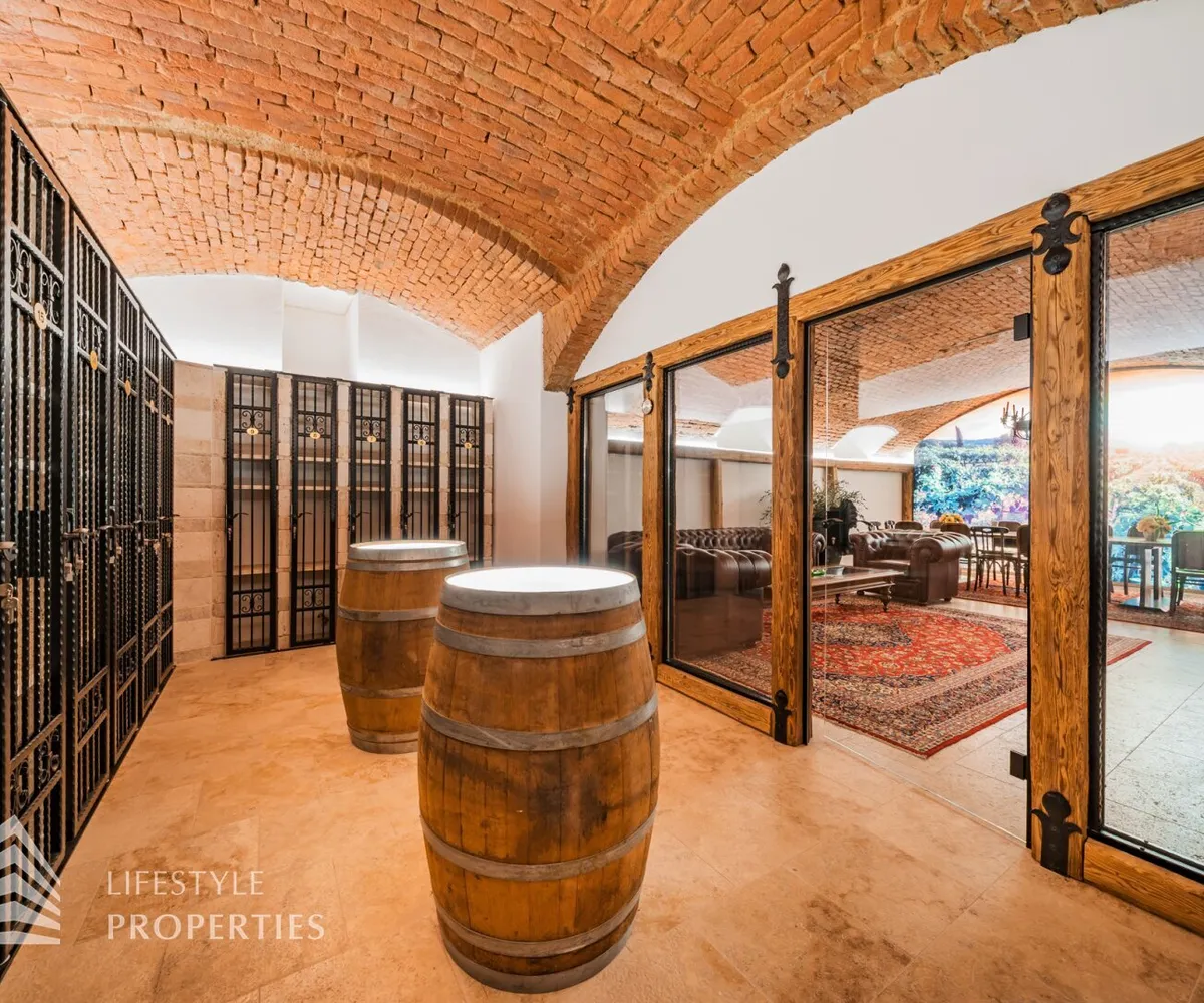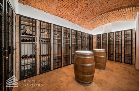Der im 2. Souterraingeschoß gekühlte Weinkeller mit Degustationsraum wurde in die vorhandenen historischen Ziegelgewölbe eingebaut.