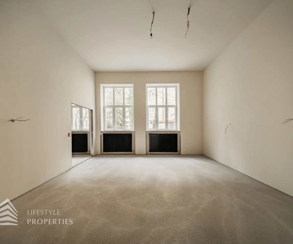 Zur Vermietung gelangt ein traumhaftes Loft in Toplage des 2. Wiener Gemeindebezirks. Im Moment handelt es sich um ein großes Zimmer, dies verleiht der Immobilie einen ganz besonderen Flair. Jedoch kann der Grundriss so abgeändert werden, dass bis zu sechs getrennte Räume entstehen. Bei dem beigefügten Bild handelt es sich lediglich um ein Musterfoto, um das mögliche Ergebnis des Objekts nach Sanierung aufzuzeigen.