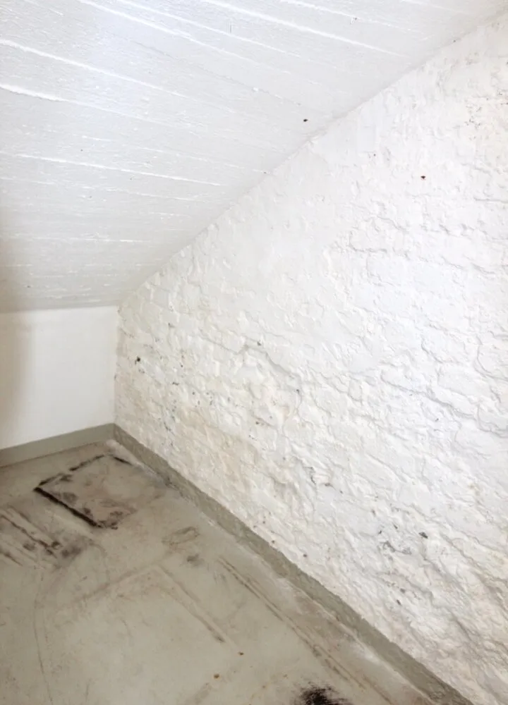 Die Nutzfläche beträgt ca. 106 m 2 im Souterrain und 133,84m 2 im Dachgeschoß.