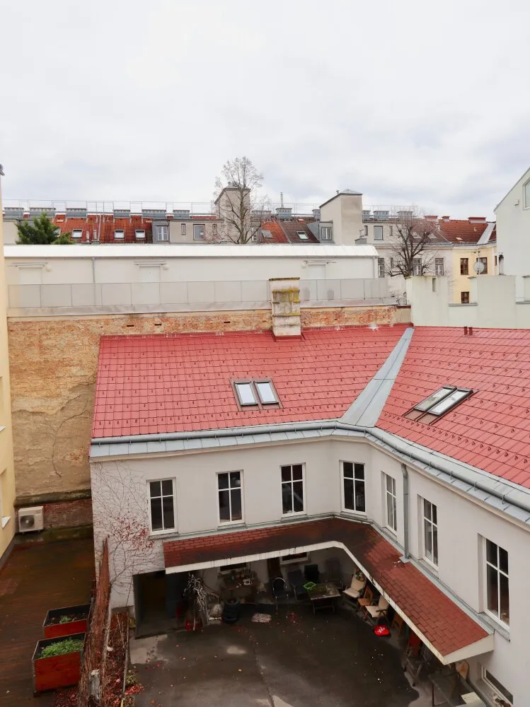 Der andere Mietgegenstand ist ein loftartiges 2-Zimmer Büro, befindet sich im Dachgeschoß, wird über eine Treppe durch den Hof erreicht und über Infrarotpanäle beheizt .