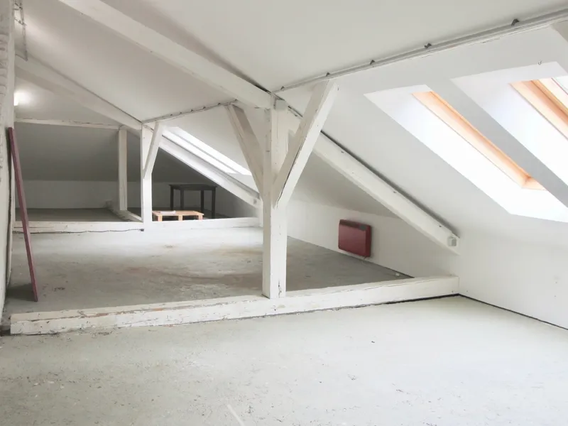 Der andere Mietgegenstand ist ein loftartiges 2-Zimmer Büro, befindet sich im Dachgeschoß, wird über eine Treppe durch den Hof erreicht und über Infrarotpanäle beheizt .