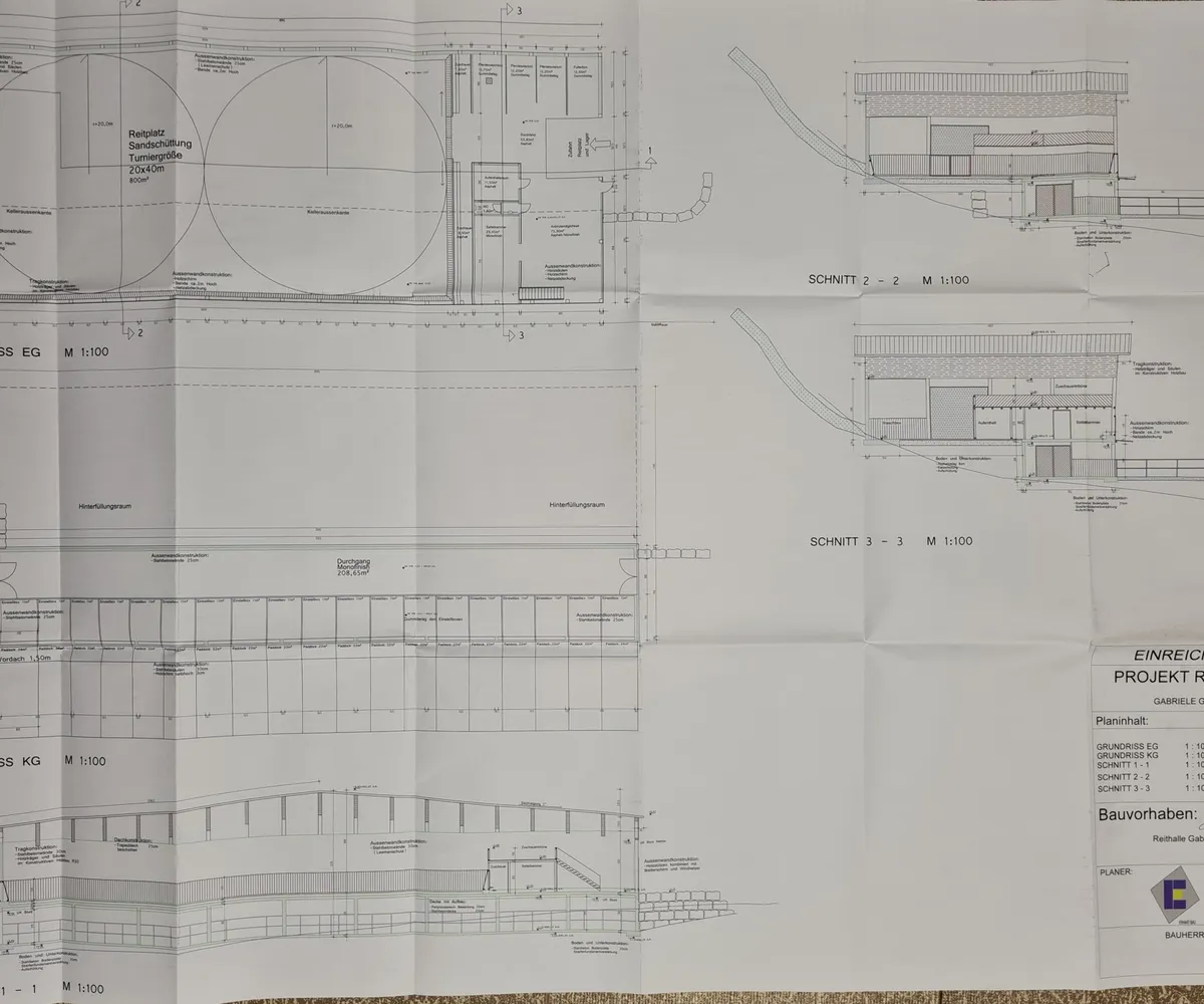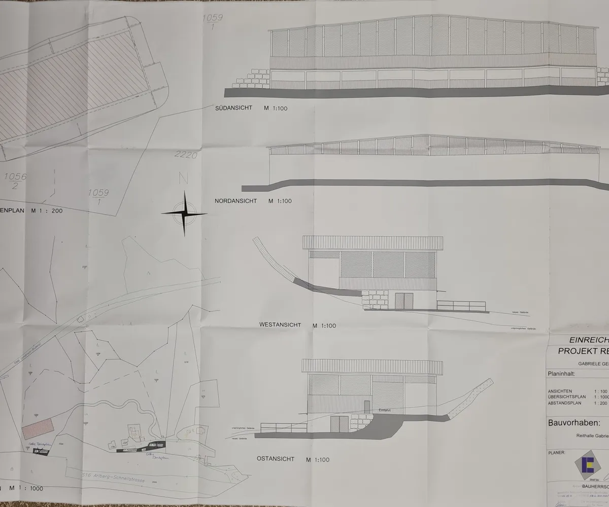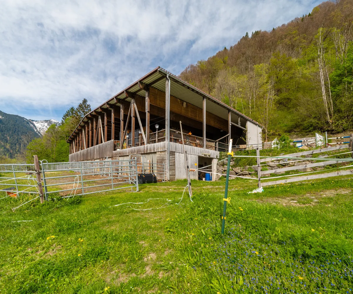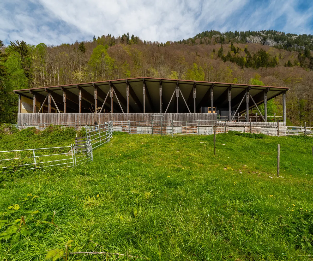 Die Reithalle liegt direkt anliegenden zu den dazugehörigen landwirtschaftlichen und forstwirtschaftlichen Flächen. Diese Lage ermöglicht es den Pferden und Reitern, die Schönheit der Umgebung in vollen Zügen zu genießen und gleichzeitig beste Bedingungen für Training und Erholung zu bieten.
