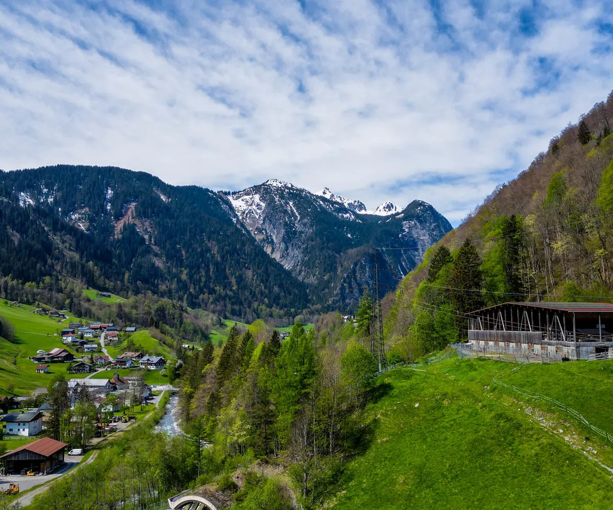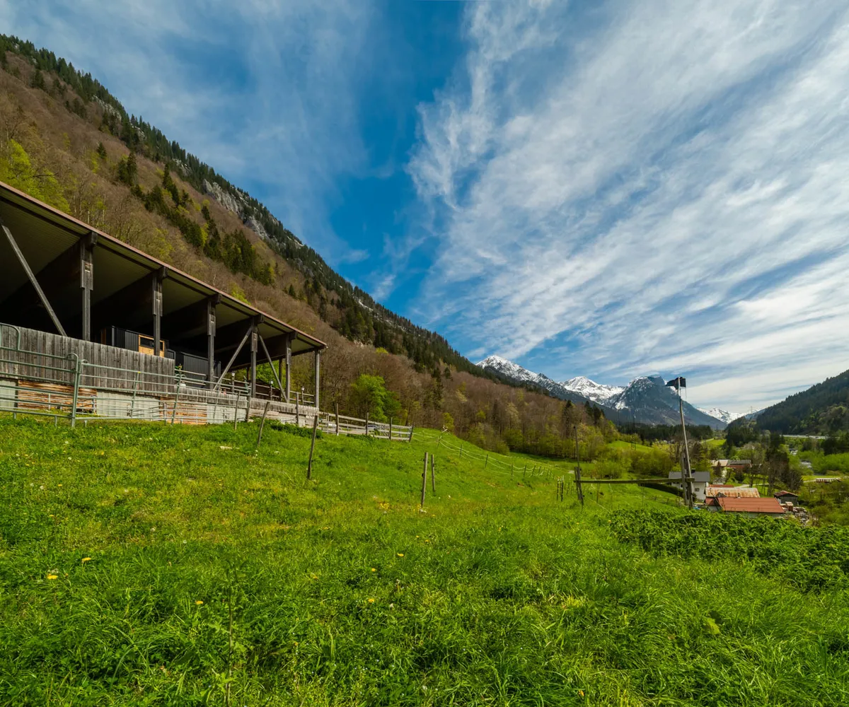 Die Reitanlage befindet sich lediglich 1,3 Kilometer nordwestlich vom malerischen Ortskern Dalaas in Voralberg, eingebettet in den Gemeindeteil Sonnenhalb. Diese exklusive Lage präsentiert sich auf einer sonnigen Anhöhe, die deutlich oberhalb des Talbodens liegt und einen atemberaubenden Panoramablick auf die umliegende Berglandschaft und Natur bietet.