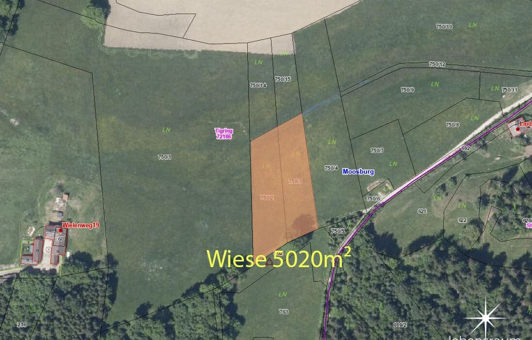 Zum Verkauf steht eine attraktive landwirtschaftliche Grünfläche in der Katastralgemeinde 72186 Tigring (Gemeinde Moosburg, Kärnten). Die Gesamtfläche beträgt 5.020 m² und setzt sich aus zwei Parzellen zusammen.