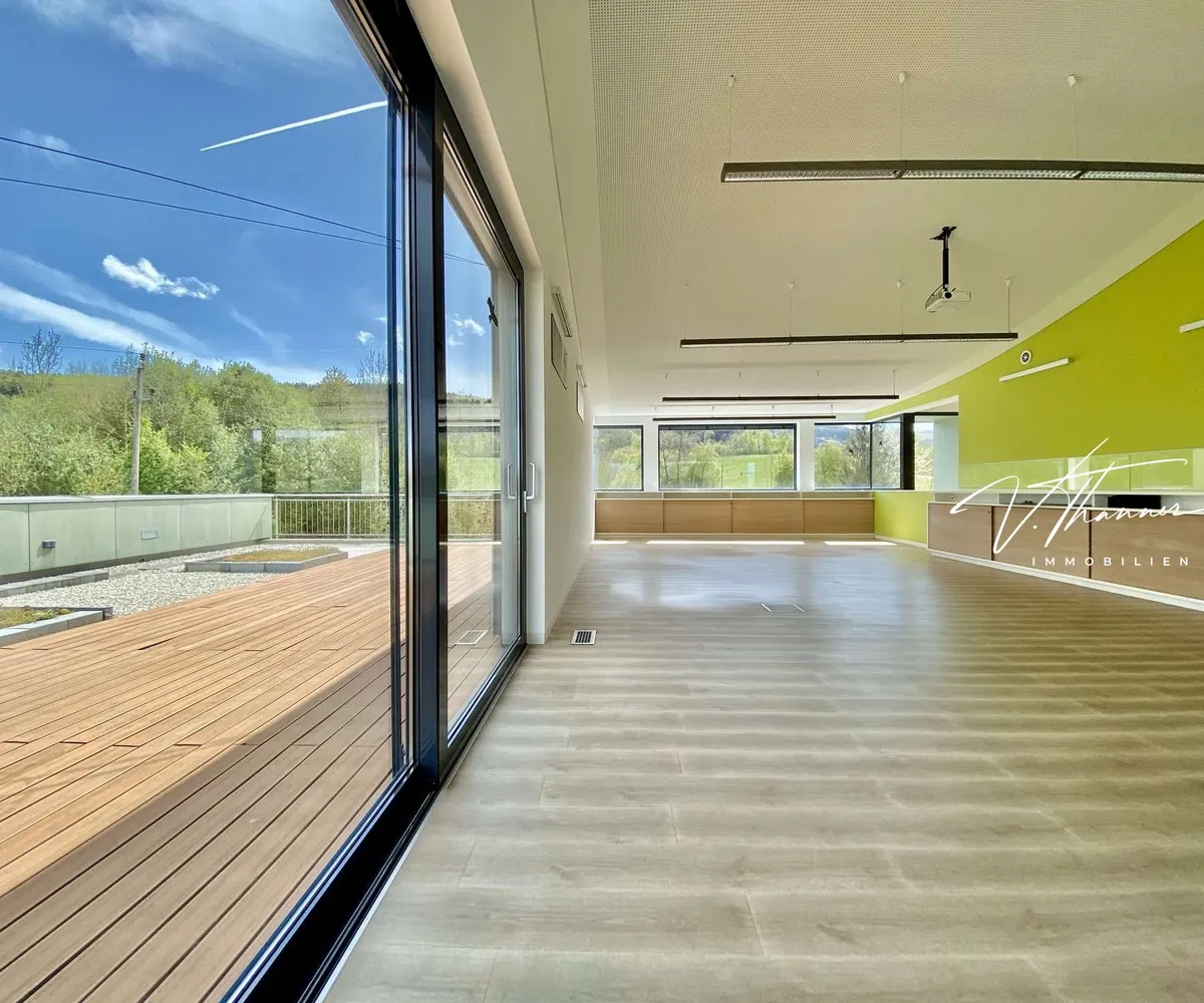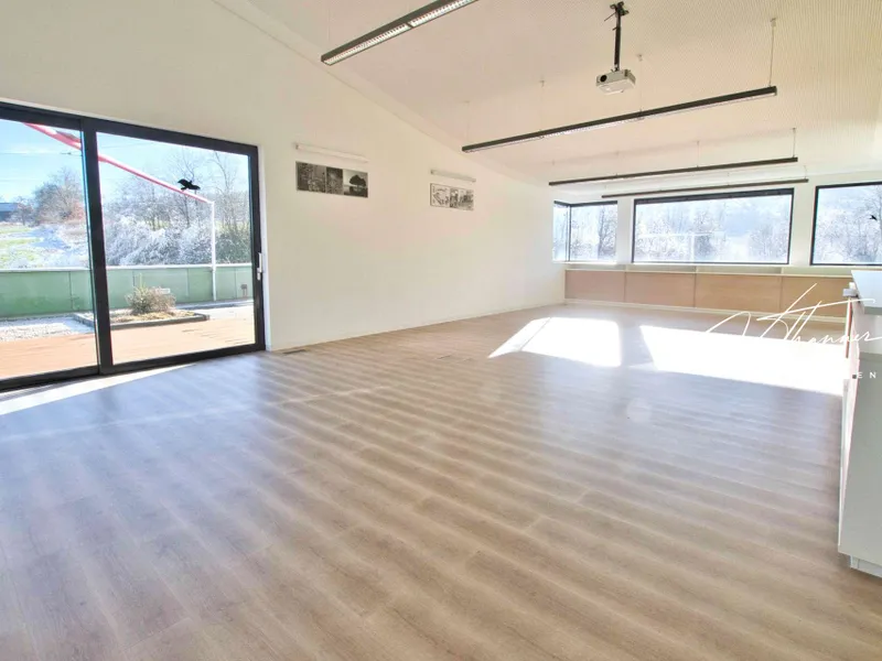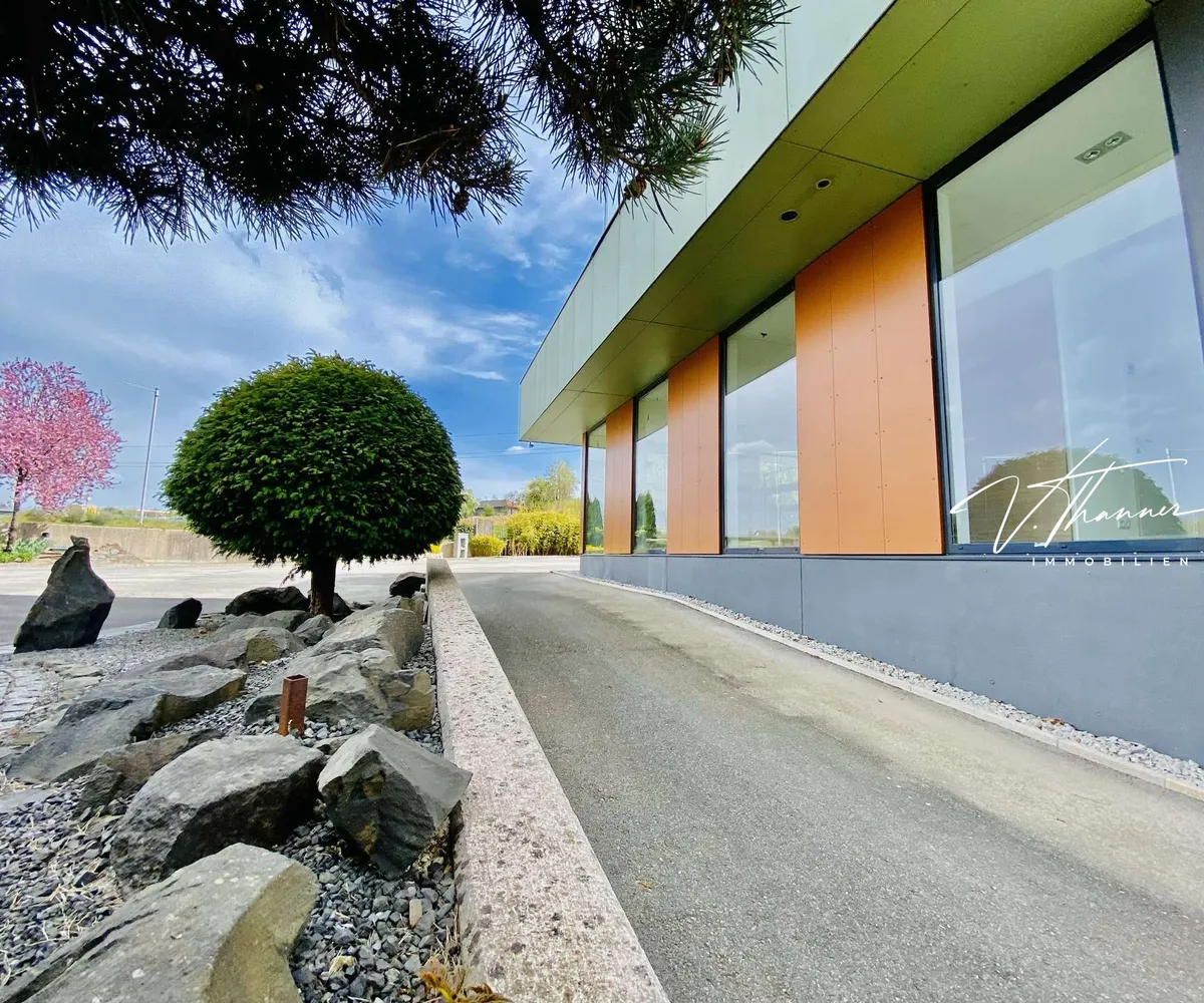 Dadurch bietet die Lage eine gute Erreichbarkeit sowohl für KundInnen aus verschiedenen Regionen als auch für Mitarbeiter und Lieferanten. Die Gewerbeimmobilie liegt außerdem in der Nähe des Gewerbeparks Regau, in dem sich zahlreiche Unternehmen aus verschiedenen Branchen angesiedelt haben.