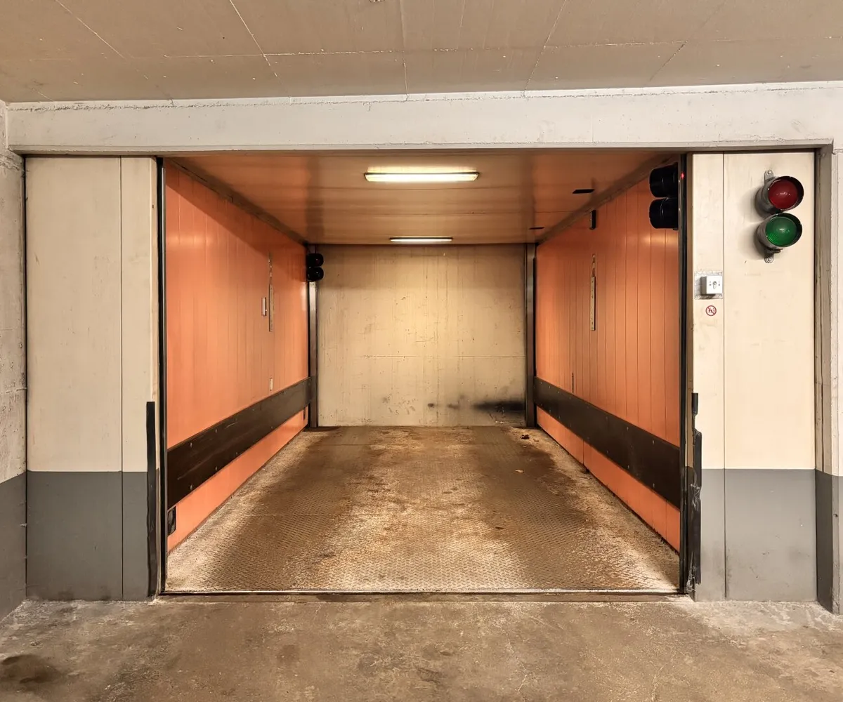 Die Einfahrt erfolgt ebenerdig durch ein elektrisches Tor. Ein Autolift befördert Ihren Wagen in das 2. Kellergeschoß. Der Tiefgaragenstellplatz befindet sich gegenüber der Liftein-/ausfahrt.