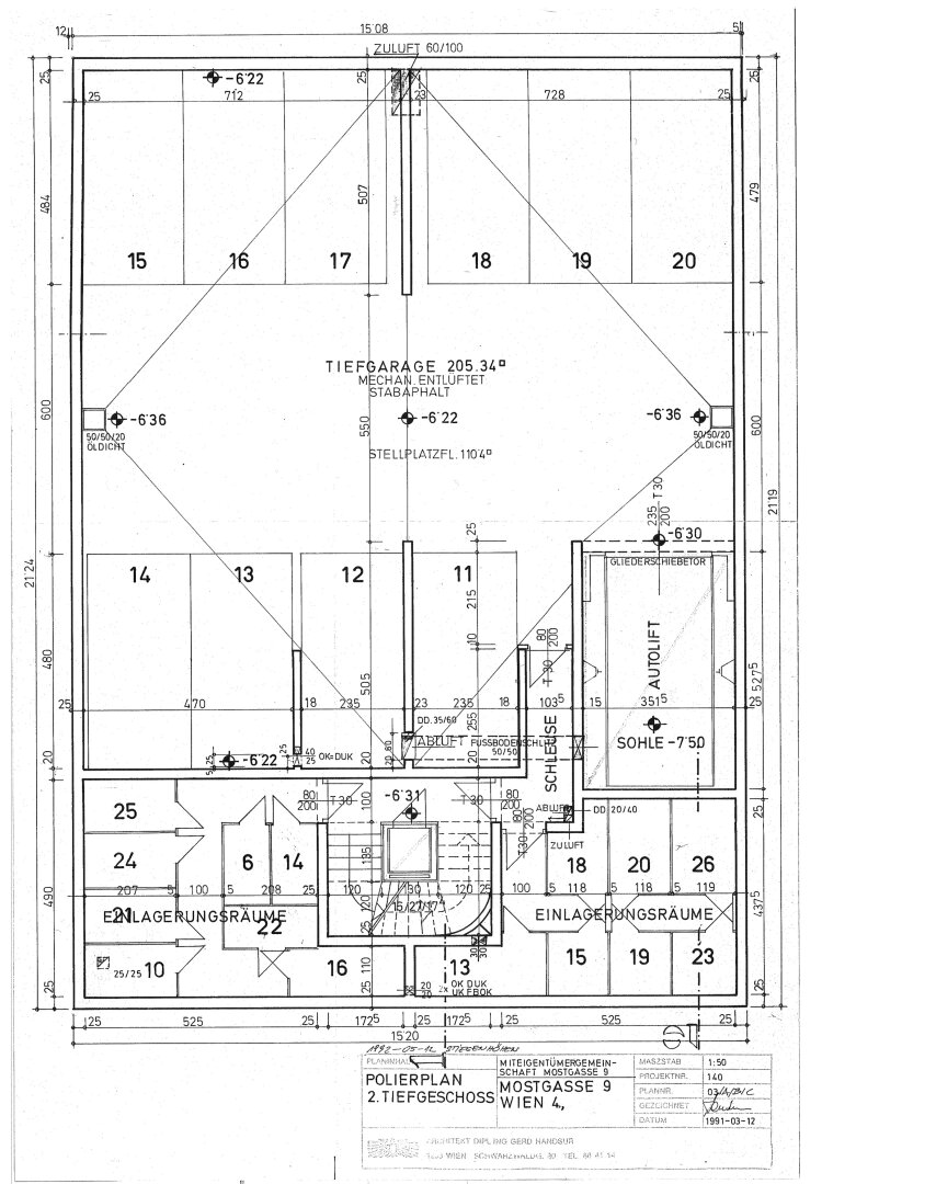 Zum Kauf gelangt der Tiefgaragenstellplatz Nr. 19 (siehe Planbeilage) in der Liegenschaft Mostgasse 9, Wien 4.