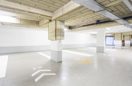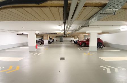Der Stellplatz befindet sich in einer gut beleuchteten, modernen Tiefgarage. Die Einfahrt befindet sich direkt bei der Himberger Straße und die maximale Fahrzeughöhe beträgt 2,10 Meter .