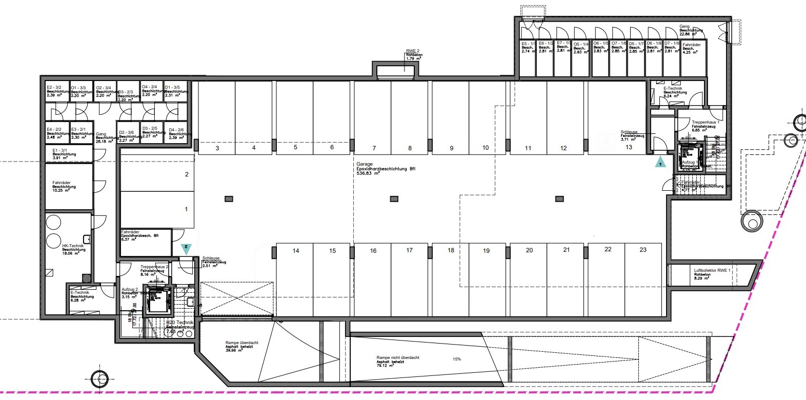 Der Stellplatz hat eine Fläche von ca. 12,50m² und die Garage selbst ist gut zu befahren.
