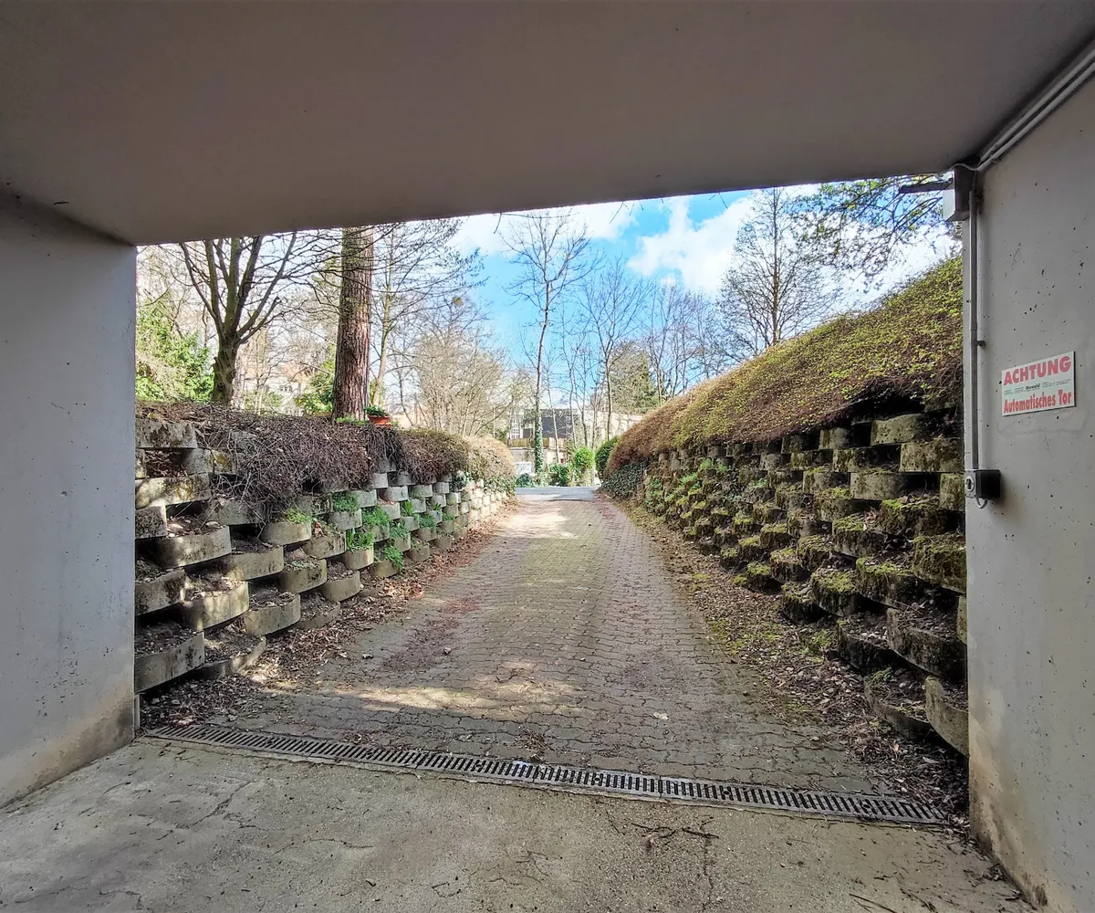 Die Zufahrt erfolgt durch ein elektrisches Gartentor und einem elektrischen Garagentor. Die Garage ist beleuchtet und ist gut zu befahren.