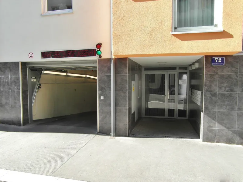 Genießen Sie einen sicheren und komfortablen Stellplatz in der modernen Wohnanlage „TrIIIple“. Die großzügige Tiefgarage bietet eine bequeme Zufahrt von beiden Seiten des Gebäudes sowie eine schnelle Anbindung an Tangente und A4 (nur ca. 2 Minuten entfernt).
