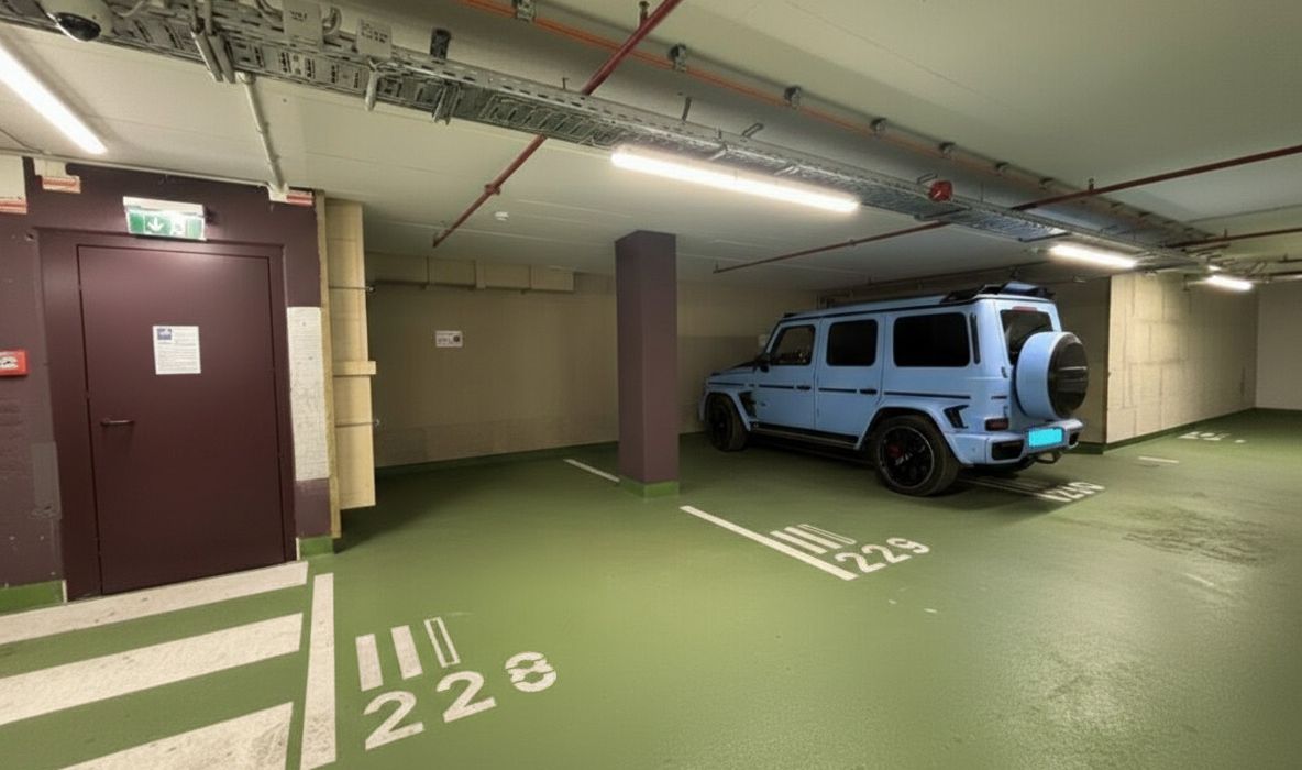 Genießen Sie einen sicheren und komfortablen Stellplatz in der modernen Wohnanlage „TrIIIple“. Die großzügige Tiefgarage bietet eine bequeme Zufahrt von beiden Seiten des Gebäudes sowie eine schnelle Anbindung an Tangente und A4 (nur ca. 2 Minuten entfernt).