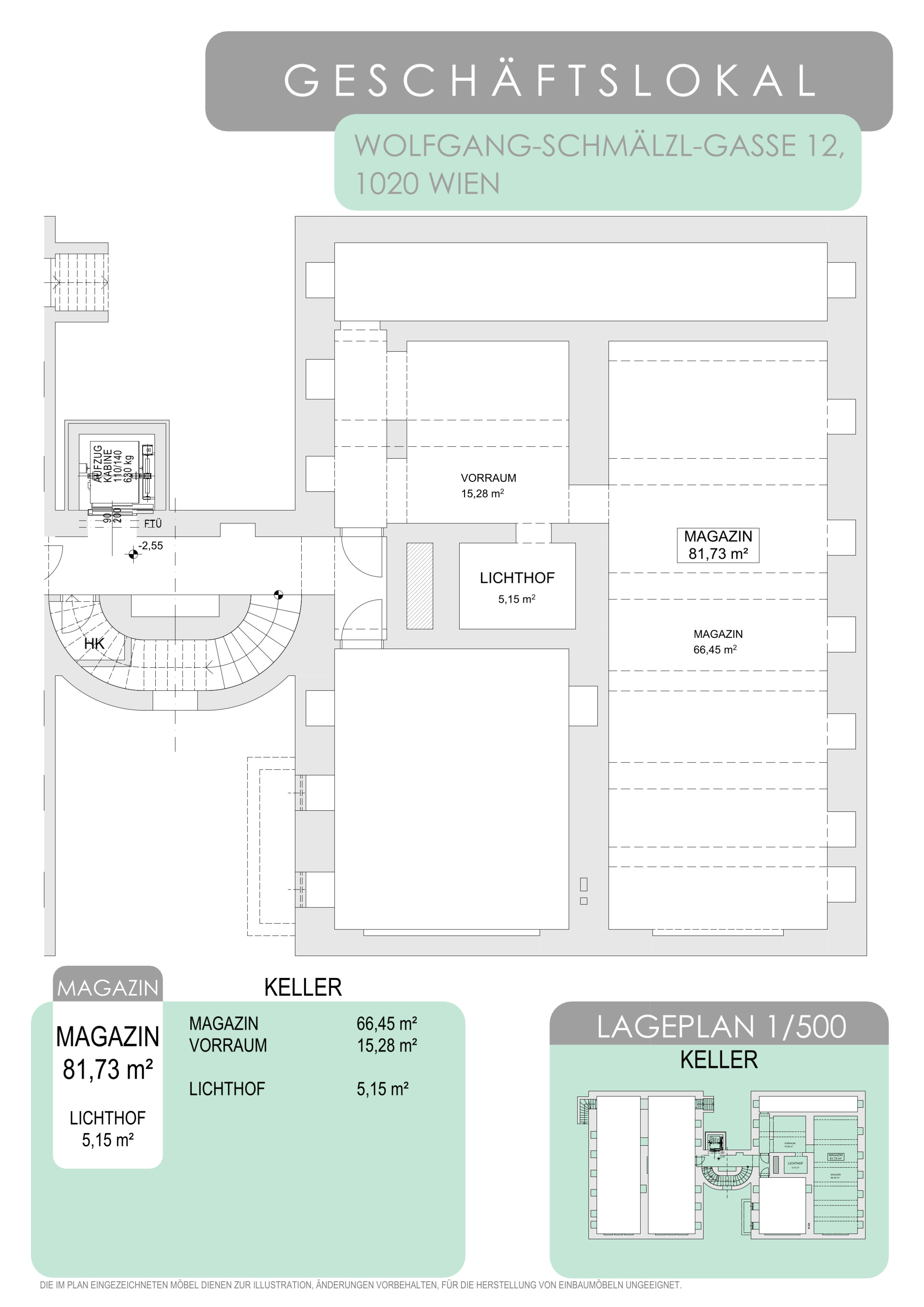 Das Magazin befindet sich im Kellergeschoß und bietet eine großzügige, zusammenhängende Fläche mit praktischem Vorraum sowie guter Zugänglichkeit.