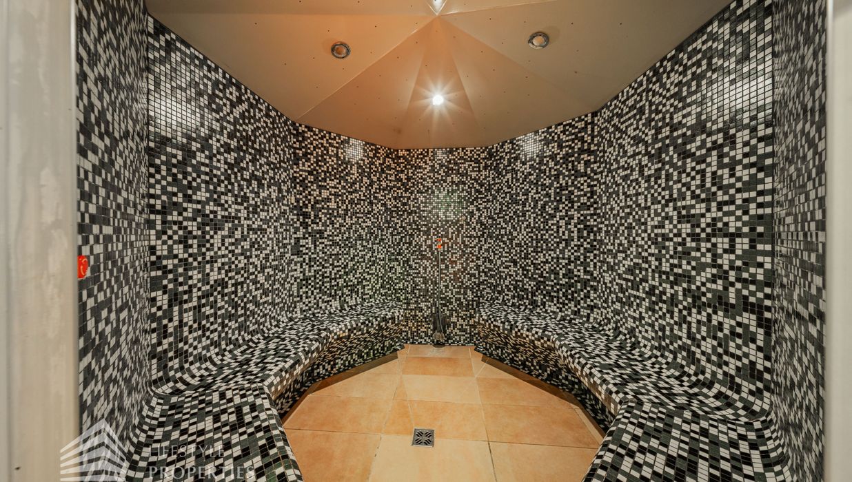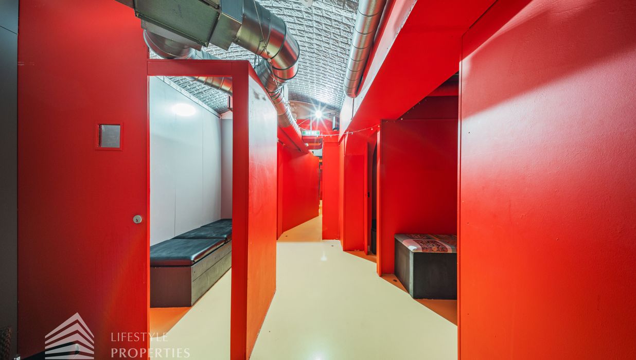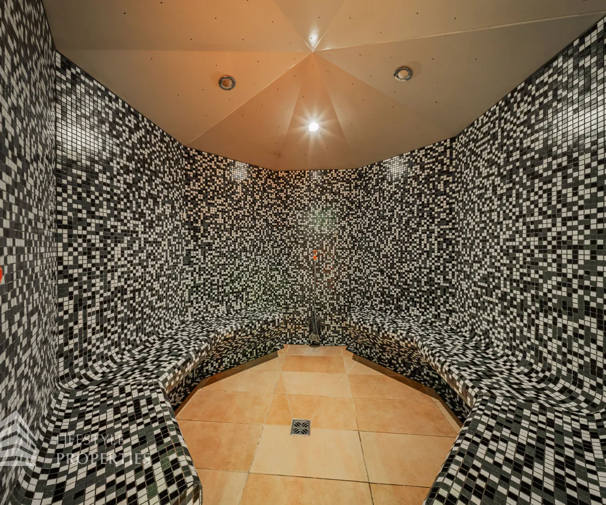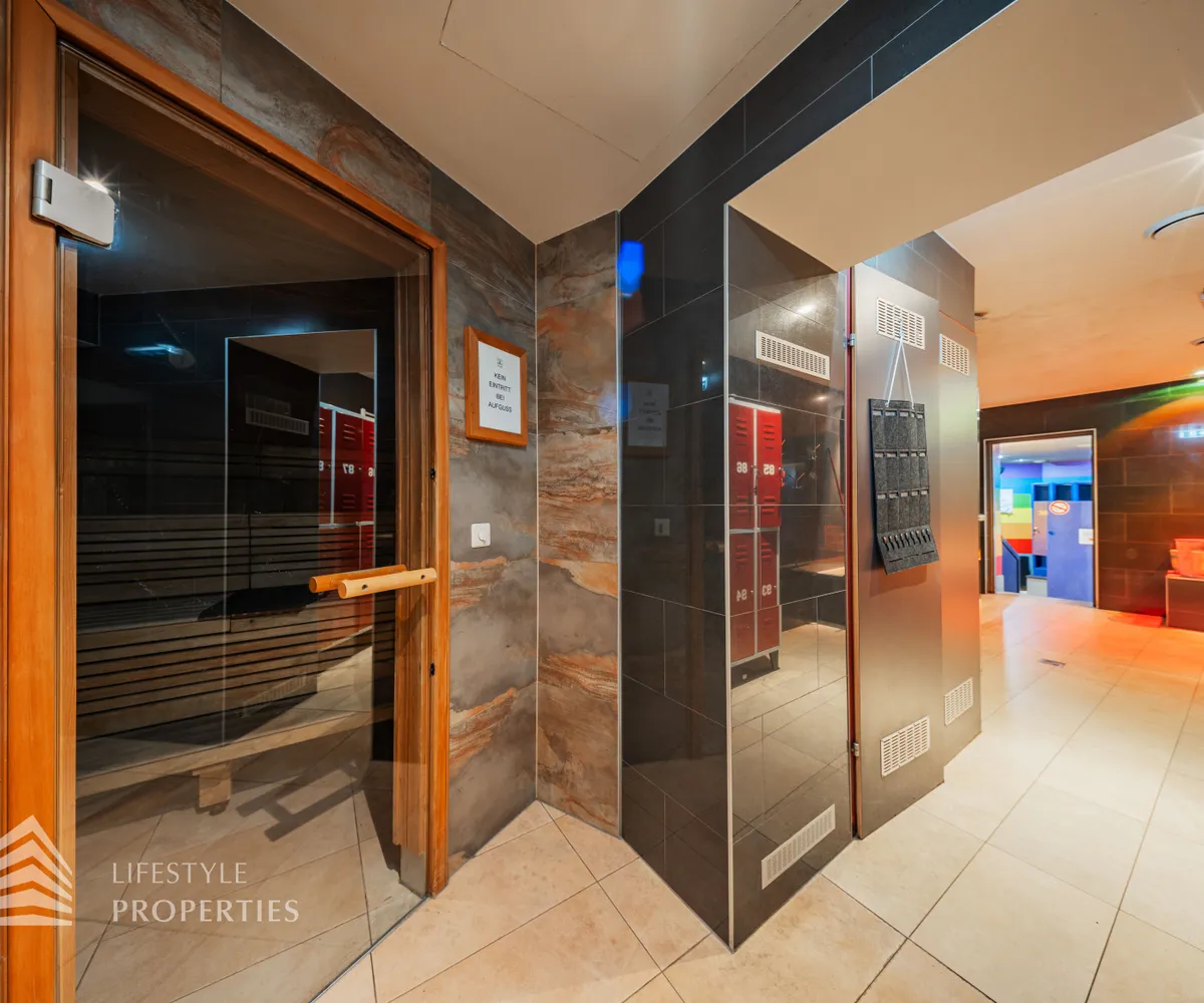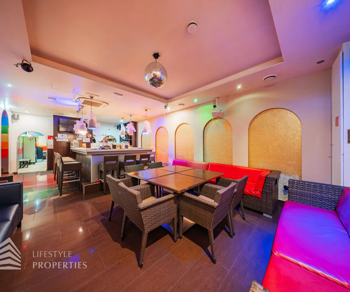 Das Objekt verfügt über eine vollausgestattete Küche mit Bar sowie über einen Saunabereich mit einer Finnischen Sauna und einem Dampfbad als auch einen Ruheraum. Des Weiteren gibt es geteilte Garderoben mit verschließbaren Spinten und ausreichend Duschen. Den Fitnessbereich kann man sowohl im Souterrain als auch im Keller auf verschiedene Flächen aufteilen. Es gibt auch abgetrennte Räume, diese sich für ein Solarium eignen.