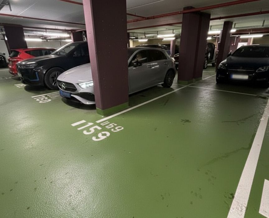 Genießen Sie einen sicheren und komfortablen Stellplatz in der modernen Wohnanlage „TrIIIple“. Die großzügige Tiefgarage bietet eine bequeme Zufahrt von beiden Seiten des Gebäudes sowie eine schnelle Anbindung an Tangente und A4 (nur ca. 2 Minuten entfernt).