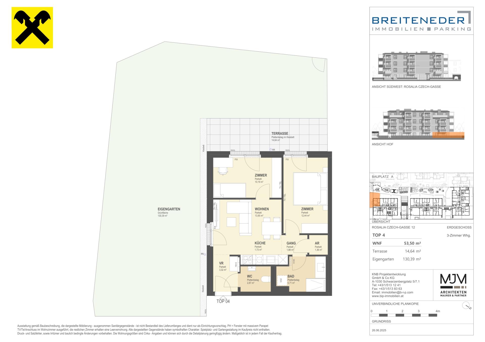 Die Preise verstehen sich als Nettokaufpreise zzgl. USt. Hinzu kommen 3,5 % Grunderwerbsteuer, 1,1 % Grundbucheintragungsgebühr sowie ein Treuhand- und Vertragserrichtungsentgelt von 1,5 % des Gesamtkaufpreises (zzgl. USt und Barauslagen).