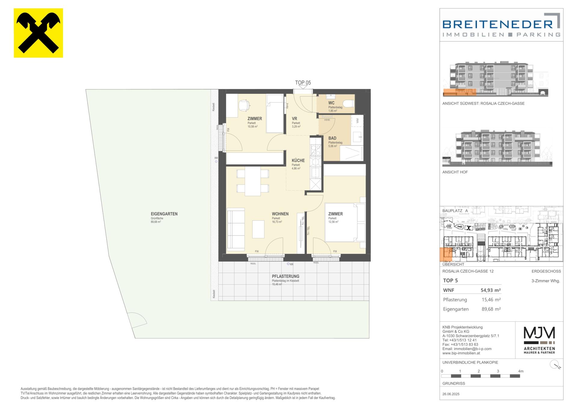 Die Preise verstehen sich als Nettokaufpreise zzgl. USt. Hinzu kommen 3,5 % Grunderwerbsteuer, 1,1 % Grundbucheintragungsgebühr sowie ein Treuhand- und Vertragserrichtungsentgelt von 1,5 % des Gesamtkaufpreises (zzgl. USt und Barauslagen).