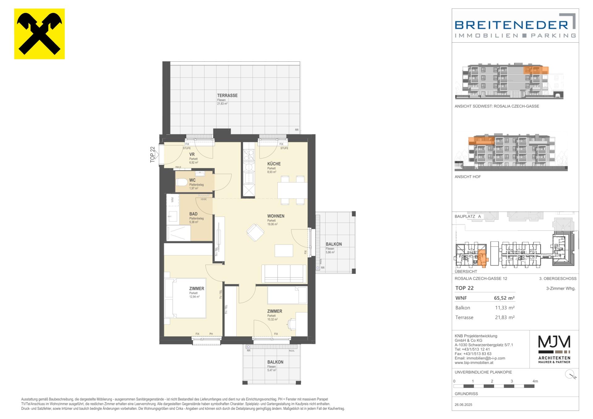 Die Preise verstehen sich als Nettokaufpreise zzgl. USt. Hinzu kommen 3,5 % Grunderwerbsteuer, 1,1 % Grundbucheintragungsgebühr sowie ein Treuhand- und Vertragserrichtungsentgelt von 1,5 % des Gesamtkaufpreises (zzgl. USt und Barauslagen).