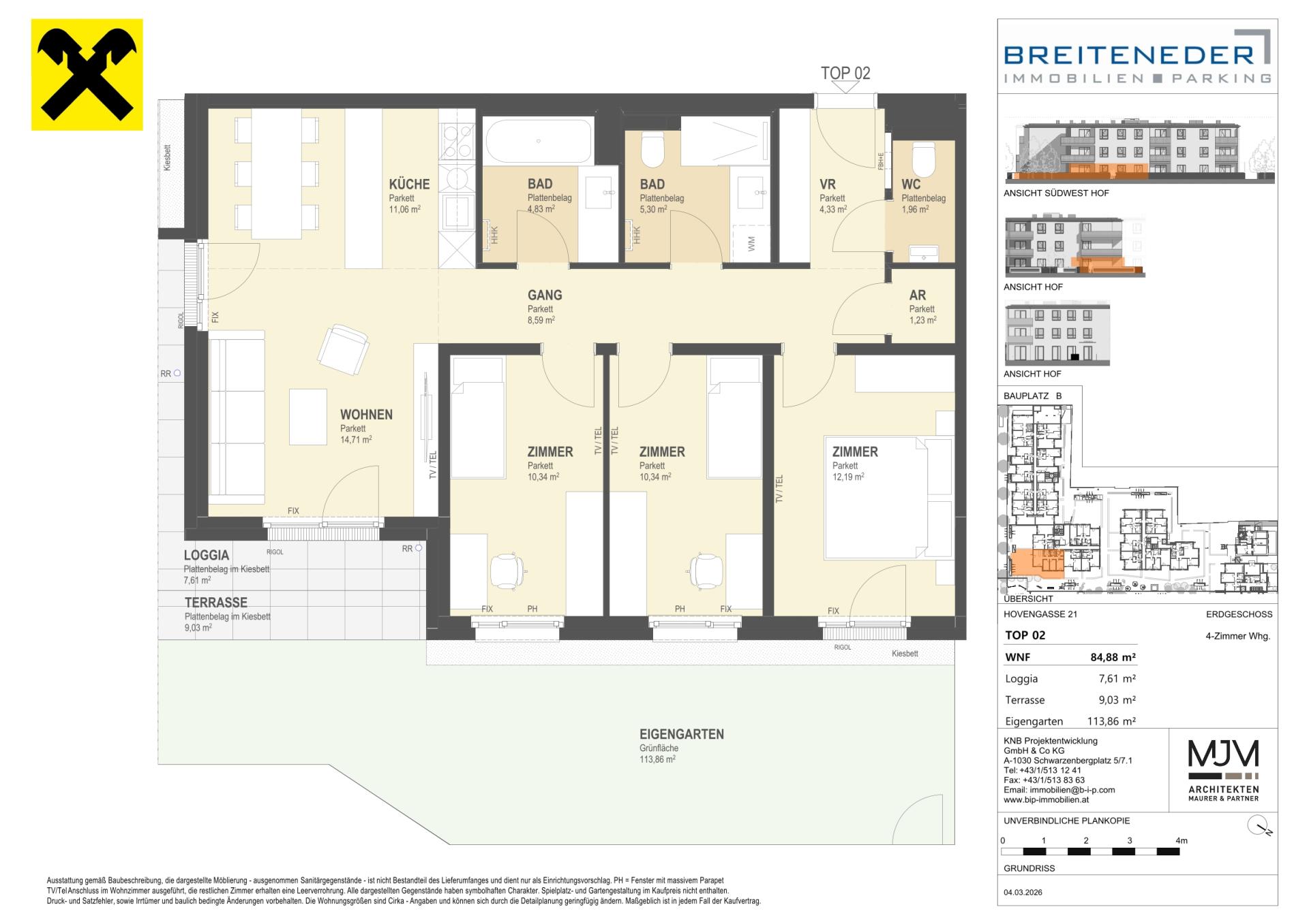 Die Preise verstehen sich als Nettokaufpreise zzgl. USt. Hinzu kommen 3,5 % Grunderwerbsteuer, 1,1 % Grundbucheintragungsgebühr sowie ein Treuhand- und Vertragserrichtungsentgelt von 1,5 % des Gesamtkaufpreises (zzgl. USt und Barauslagen).