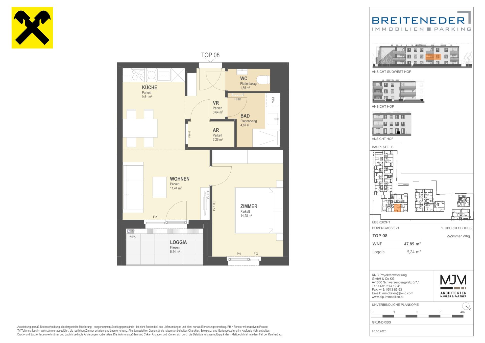 Die Preise verstehen sich als Nettokaufpreise zzgl. USt. Hinzu kommen 3,5 % Grunderwerbsteuer, 1,1 % Grundbucheintragungsgebühr sowie ein Treuhand- und Vertragserrichtungsentgelt von 1,5 % des Gesamtkaufpreises (zzgl. USt und Barauslagen).