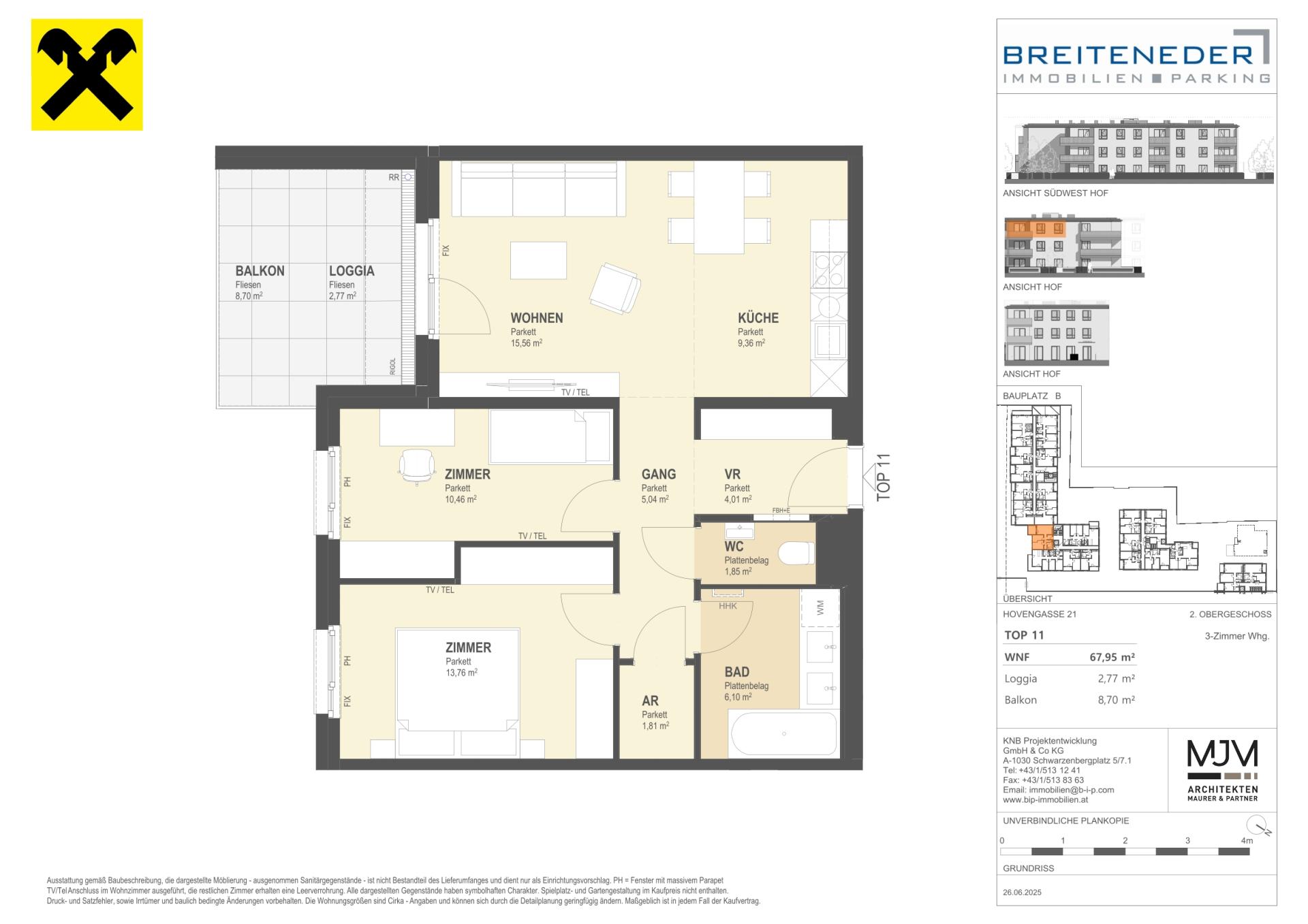 Die Preise verstehen sich als Nettokaufpreise zzgl. USt. Hinzu kommen 3,5 % Grunderwerbsteuer, 1,1 % Grundbucheintragungsgebühr sowie ein Treuhand- und Vertragserrichtungsentgelt von 1,5 % des Gesamtkaufpreises (zzgl. USt und Barauslagen).