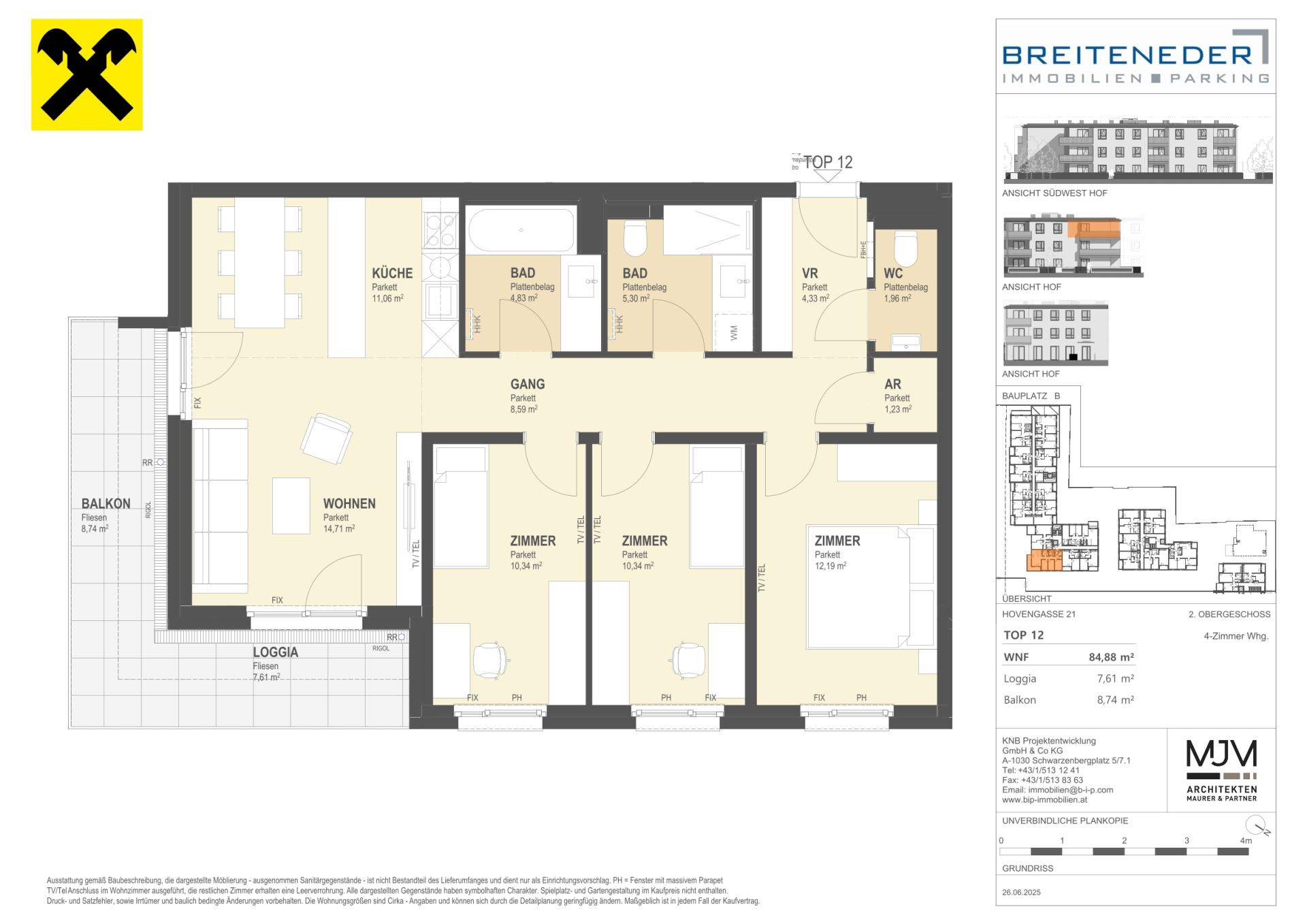 Die Preise verstehen sich als Nettokaufpreise zzgl. USt. Hinzu kommen 3,5 % Grunderwerbsteuer, 1,1 % Grundbucheintragungsgebühr sowie ein Treuhand- und Vertragserrichtungsentgelt von 1,5 % des Gesamtkaufpreises (zzgl. USt und Barauslagen).