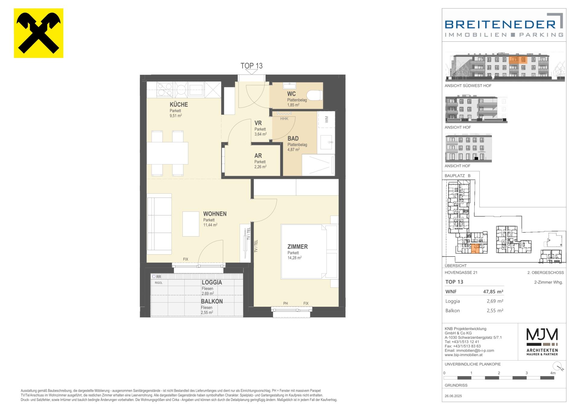 Die Preise verstehen sich als Nettokaufpreise zzgl. USt. Hinzu kommen 3,5 % Grunderwerbsteuer, 1,1 % Grundbucheintragungsgebühr sowie ein Treuhand- und Vertragserrichtungsentgelt von 1,5 % des Gesamtkaufpreises (zzgl. USt und Barauslagen).