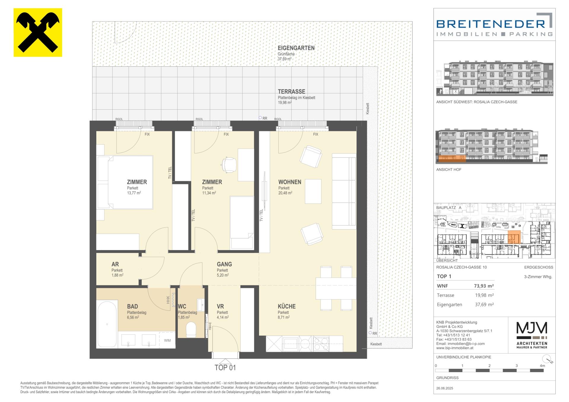Die Preise verstehen sich als Nettokaufpreise zzgl. USt. Hinzu kommen 3,5 % Grunderwerbsteuer, 1,1 % Grundbucheintragungsgebühr sowie ein Treuhand- und Vertragserrichtungsentgelt von 1,5 % des Gesamtkaufpreises (zzgl. USt und Barauslagen).