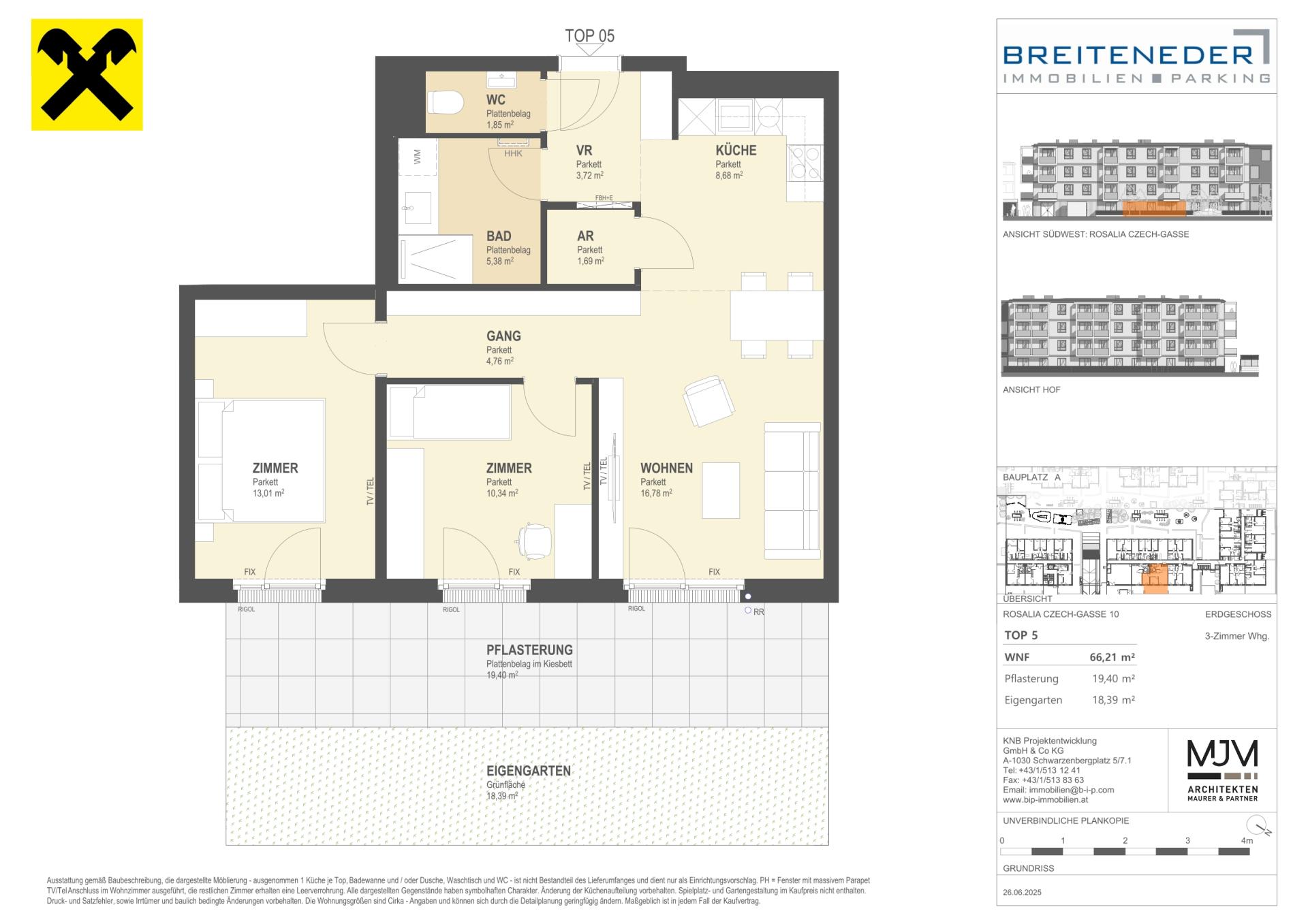 Die Preise verstehen sich als Nettokaufpreise zzgl. USt. Hinzu kommen 3,5 % Grunderwerbsteuer, 1,1 % Grundbucheintragungsgebühr sowie ein Treuhand- und Vertragserrichtungsentgelt von 1,5 % des Gesamtkaufpreises (zzgl. USt und Barauslagen).