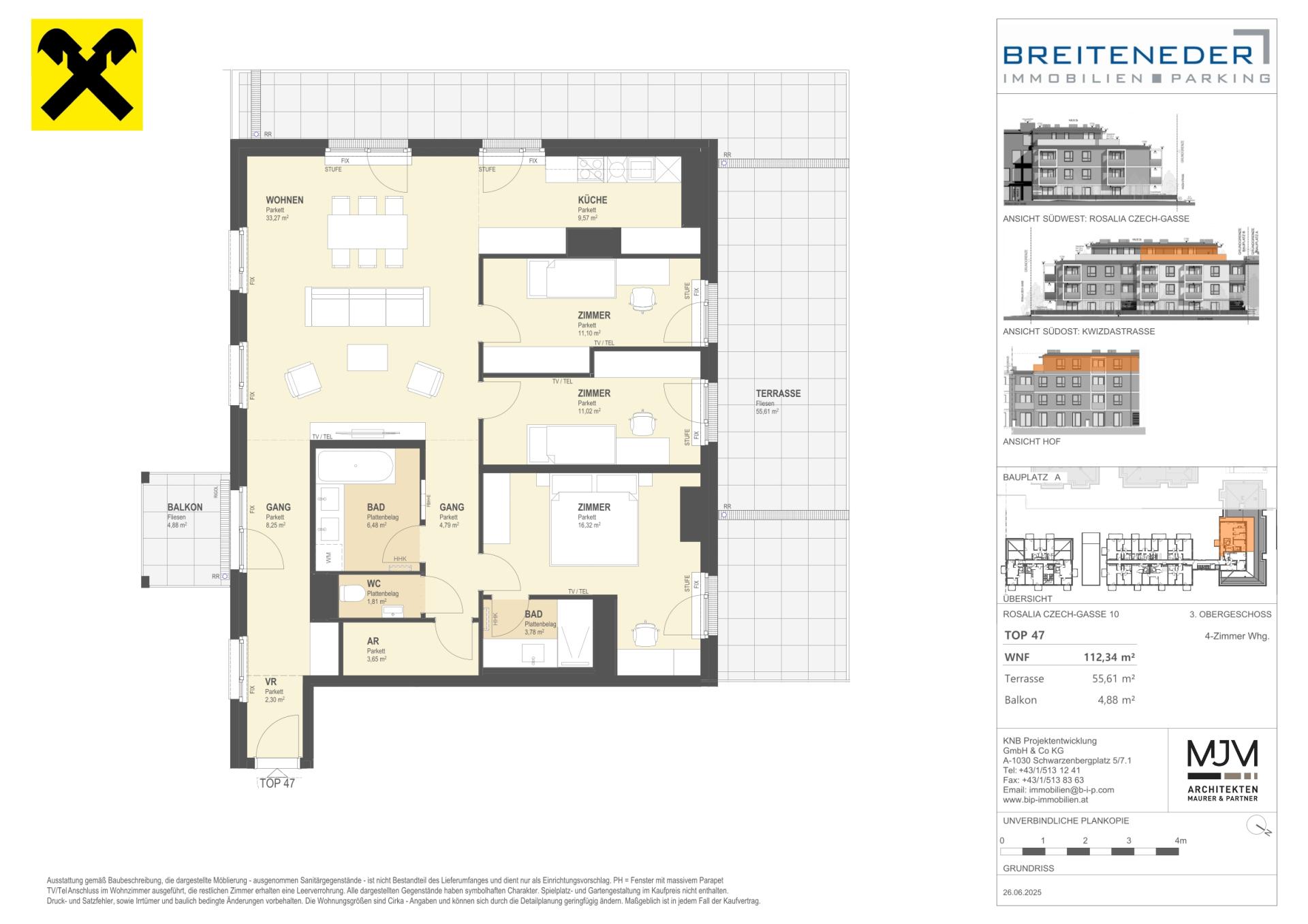 Das Projekt setzt auf zukunftsorientierte Energieeffizienz: Moderne Luft-Wärmepumpe, die Vorbereitung für Photovoltaik-Anlagen sowie E-Ladestationen sind Teil des Konzepts. Ein angestrebtes klima.aktiv-Zertifikat unterstreicht den nachhaltigen Anspruch. Hochwertige Materialien wie Parkettboden, 3-fach-verglaste Fenster sowie optional Küchen mit Miele-Geräten schaffen ein Wohnumfeld, das heute begeistert und morgen Bestand hat.