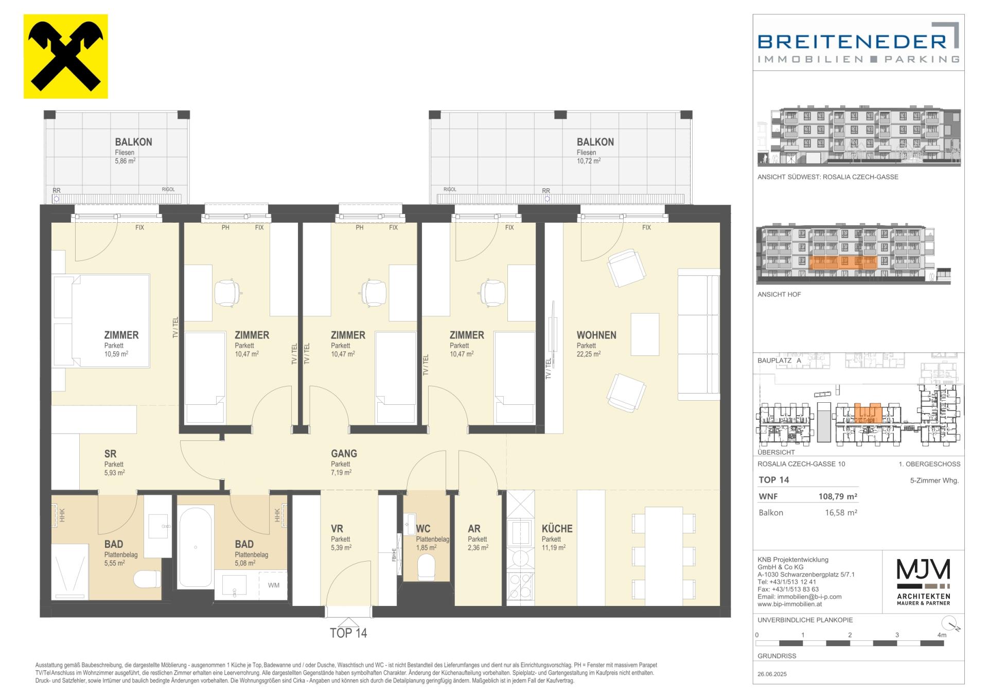 Das Projekt setzt auf zukunftsorientierte Energieeffizienz: Fernwärme, die Vorbereitung für Photovoltaik-Anlagen sowie E-Ladestationen sind Teil des Konzepts. Ein angestrebtes klima.aktiv-Zertifikat unterstreicht den nachhaltigen Anspruch. Hochwertige Materialien wie Eichenparkett, 3-fach-verglaste Fenster und Küchen mit Miele-Geräten schaffen ein Wohnumfeld, das heute begeistert und morgen Bestand hat.